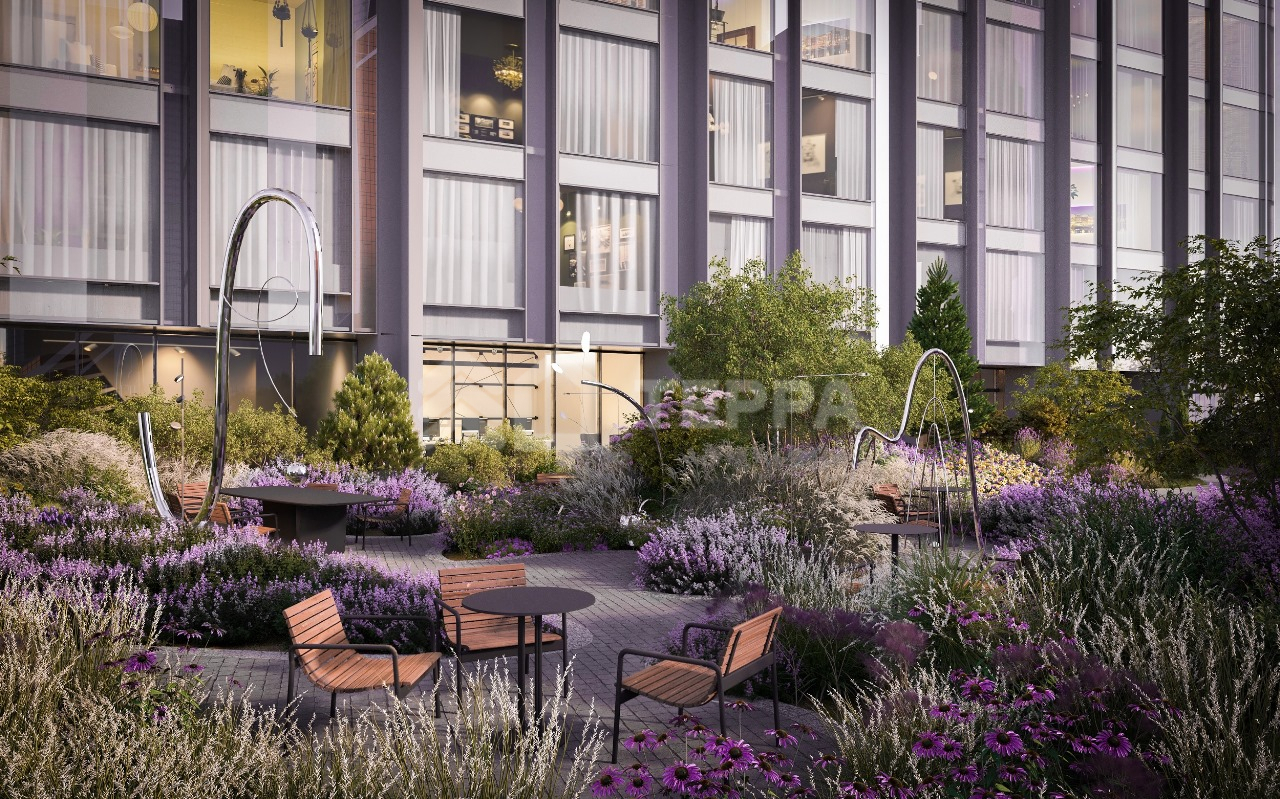 Приватный двор небоскреба будет напоминать открытую гостиную, где резиденты