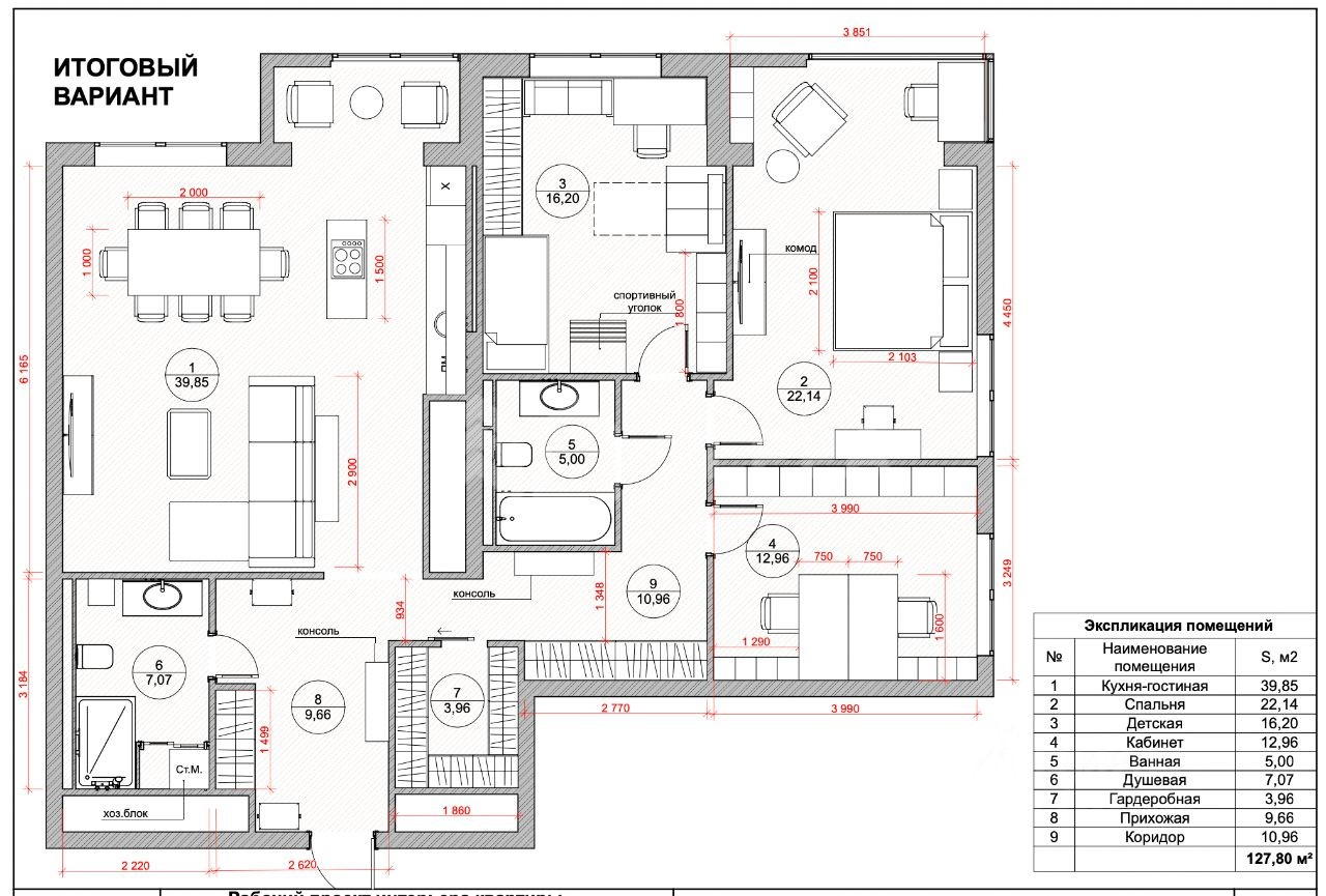 Прихожая, кухня-столовая, гостиная, кабинет, 2 спальни, 2 с/у.