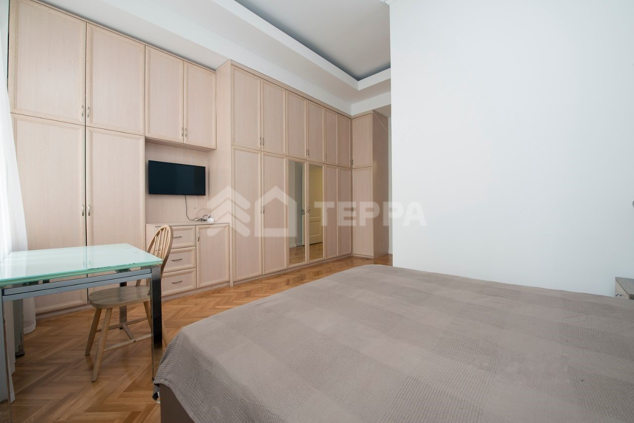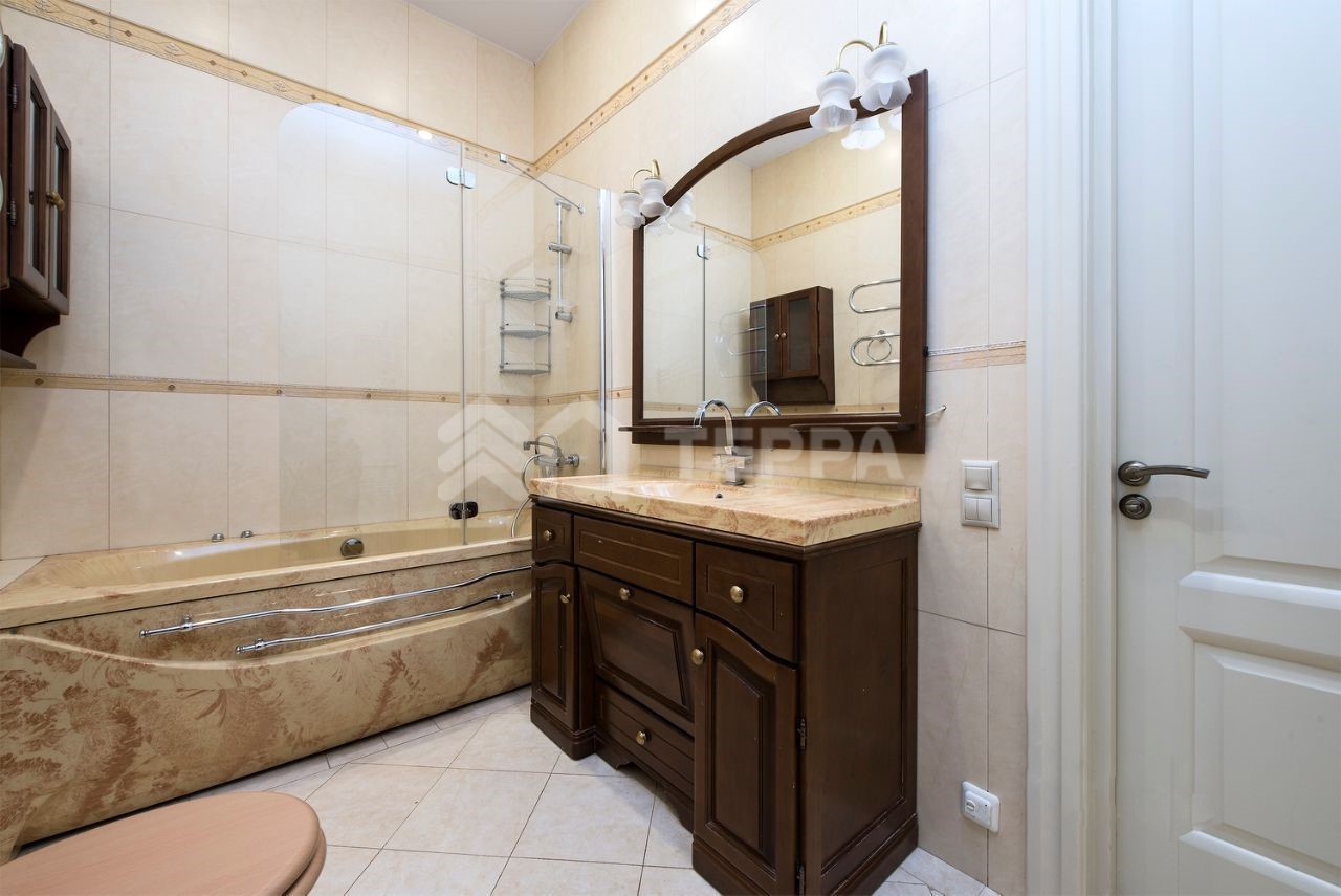 Предлагаем 7-ти комнатную квартиру c 3-мя полноценными санузлами. В квартире 3 ванные комнаты, высота потолков - 3.6 метра, балкон. Отличное состояние, меблирована, оборудована кондиционерами и единой системой очистки воды. Окна выходят во двор, и тихий переулок. Солидные соседи. Лифт, консьерж, огороженный двор с детской площадкой и зоной отдыха, парковка во дворе, шлагбаум с охраной 24/7.
