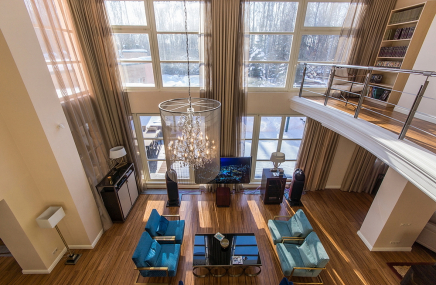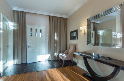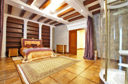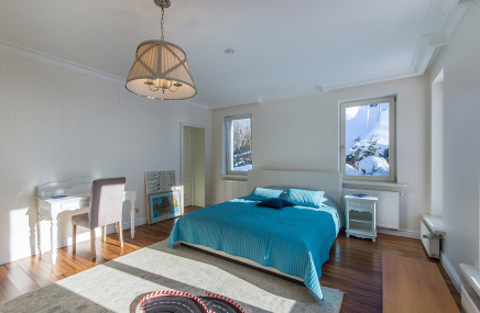 - хозяйский блок: спальня с панорамным остеклением и видом на воду,ванная комната, мужская гардеробная, женский будуар с гардеробной