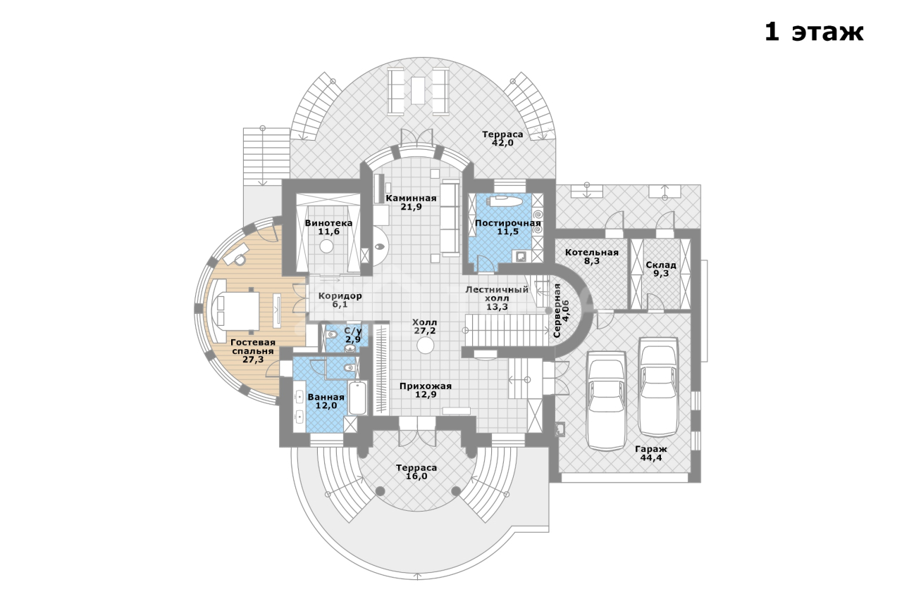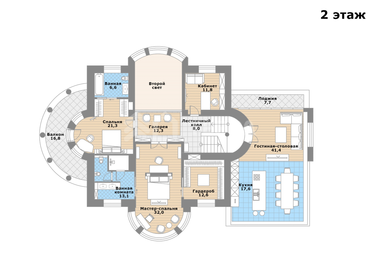 - мастер-спальня с ванной комнатой и гардеробной