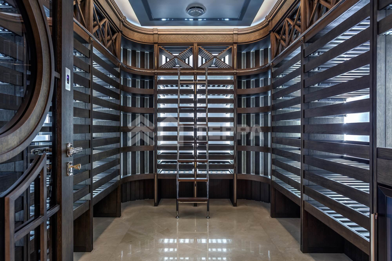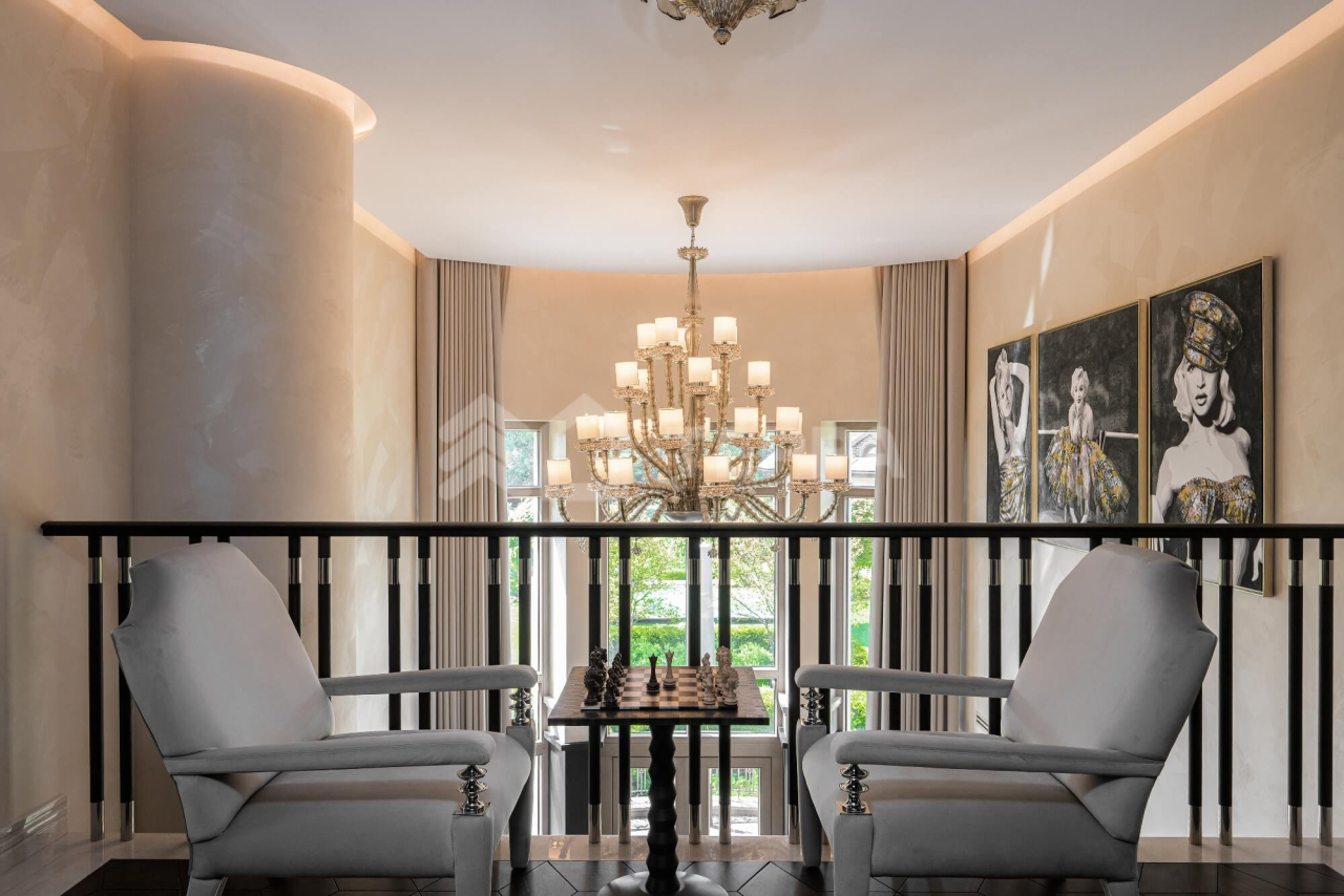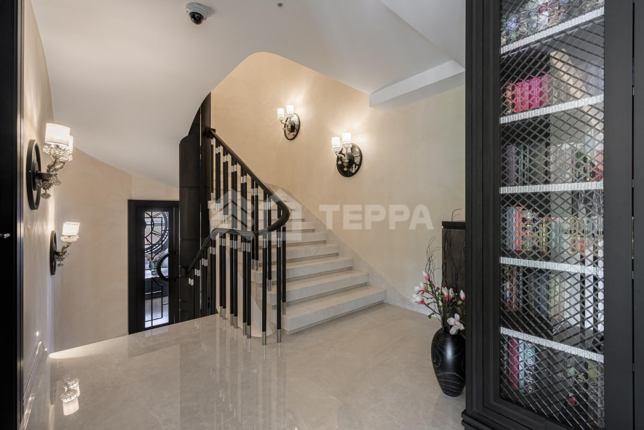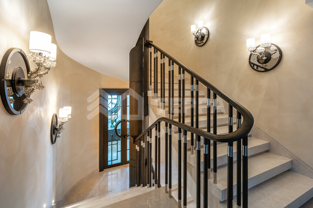 ОСОБЕННОСТИ ДОМА: Винотека на 1200 бутылок. Рабочие фасадные часы в гостиной в стиле Breguet (диаметром 2 метра, изготовлены по спецзаказу во Франции). Самая большая в мире каминная топка заводского производства (с открывающейся хромированно- стеклянной створкой, управляемой с пульта, производство -Spartherm, Германия.