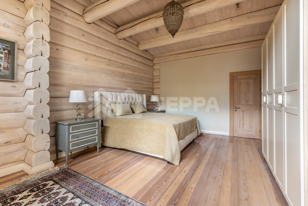Безупречный деревянный дом-СРУБ ИЗ ЛАФЕТА (Карельская сосна 25 см). Уникальность данного дома в том, что все брёвна шлифовались вручную и покрывались маслом REMMERS и противопожарной пропиткой. Участок правильной формы площадью 15 соток с плодовыми деревьями.