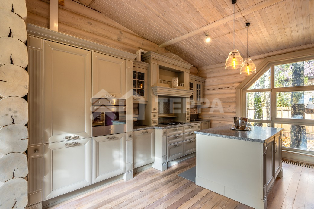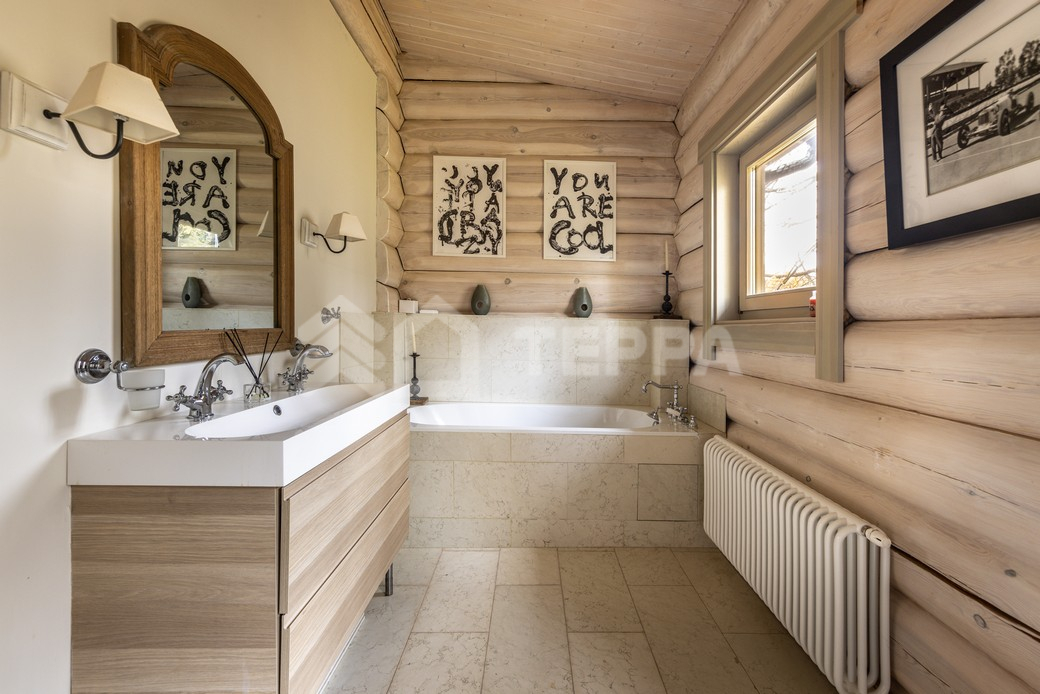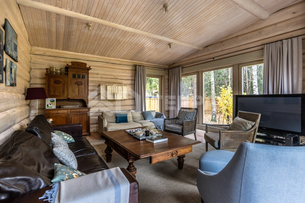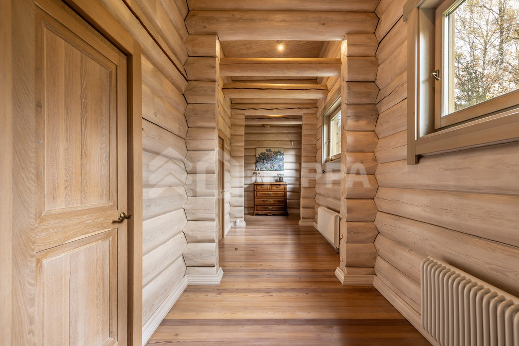 Характеристики дома: фундамент – ленточный, стены - дерево (Карельская сосна 25 см), окна – деревянные, перекрытия – деревянные, материал крыши - мягкая кровля, оснощение дома- газовый котел. Конвекторы электрические MINiB, теплые полы во всех ванных комнатах и санузлах, система фильтрации воды, газовая и пожарная сигнализация, охранная сигнализация Гольфстрим.