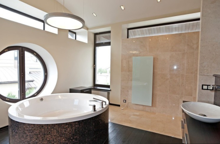 В доме устроена приточно-вытяжная вентиляция с кондиционированием и увлажнением.