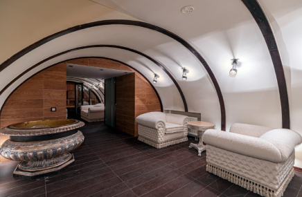 На цокольном этаже разместились кинотеатр, спортзал, помещения для хранения и спа-зона (джакузи, сауна, душевые, комната отдыха).