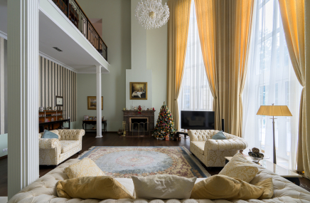 Самое масштабное помещение в доме – двусветная гостиная.