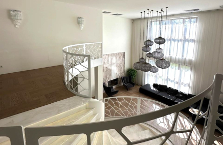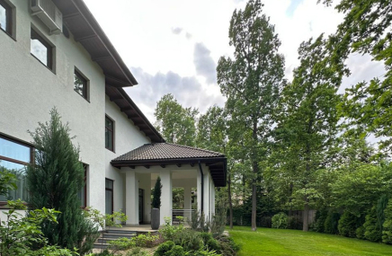 Предлагается дом в стиле современной классики "под ключ" площадью 500 кв.м на участке 26 сот. в коттеджном поселке "Променад". На участке предусмотрен гостевой дом (180 кв.м) с банным комплексом и объединен с главным домом общим патио. Зонирование дома распределено на 3 блока с собственными выходами: 1 блок: 2 гостевые спальни, кухня, холл, с/у; 2 блок (центральный): гостиная, помещение в цоколе; 3 блок (банный комплекс): баня, душевая на 2 персоны, зона отдыха, с/у, мастерская (хозяйственный блок). На участке есть зона барбекю с мангалом, беседка для отдыха, бассейн 10*5 м, освещение и декоративная подсветка, автоматический полив, парковка для 2-х авто (под навесом).