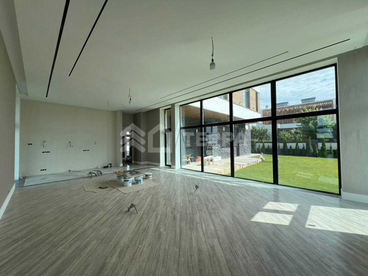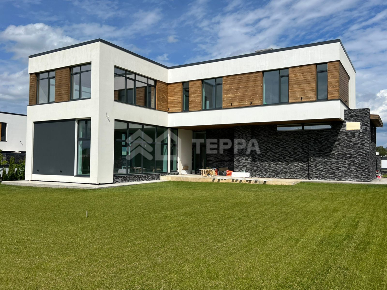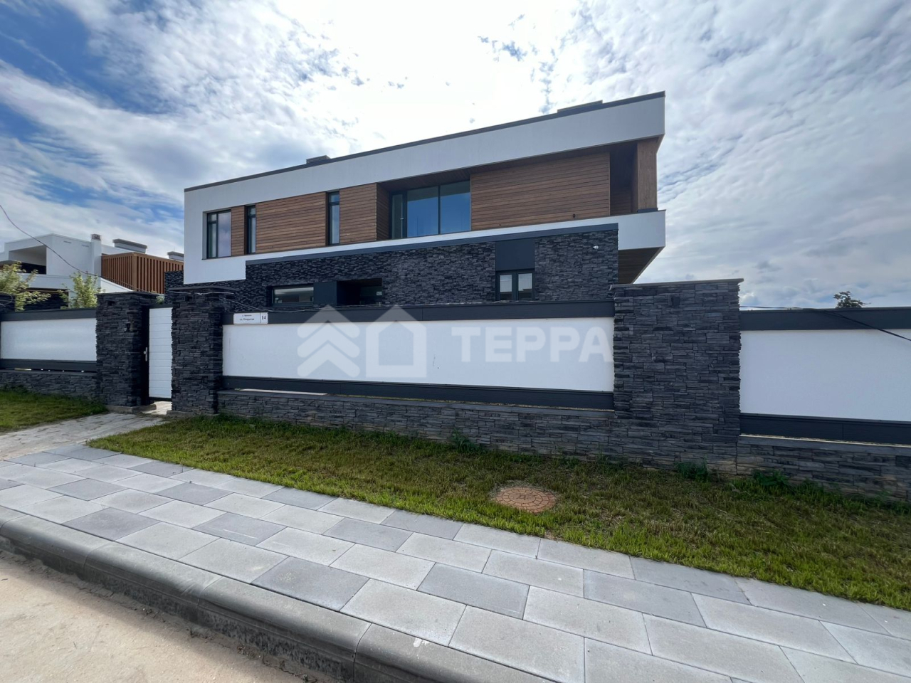 Продается современный загородный дом 310 кв.м на просторном участке 12 соток . Проведены ландшафтные работы, высажены крупномеры. Удобная планировка в 2-х уровнях, масштабное остекление, высокие потолки 4.2 м формируют светлое комфортное пространство для жизни. На 1 этаже : просторная гостиная, объединенная с кухней- столовой с выходом на террасу, кабинет, су с душевой , котельная, гараж на 2 м/м . На 2 этаже : хозяйская спальня с большой гардеробной и ванной комнатой, 2 детские спальни с гардеробными , ванная комната, постирочная, гостевая спальня.