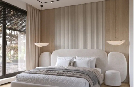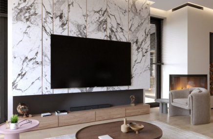 Потолки натяжные парящие с теневым профилем со встроенной подсветкой, интегрированными умными светильниками.