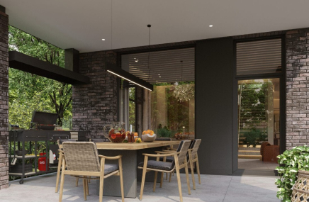 Вы можете выбрать свой сценарий входа в дом: Open с парадной дверью, ведущей через холл в зону гостиной, или Hide со входом через техническую зону с лапомойкой.