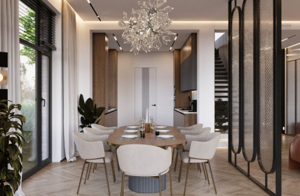 Дом полностью комплектуется бытовой техникой, меблируется корпусной и мягкой мебелью в соответствии с дизайн-проектом, оснащается тщательно подобранной ТВ и аудиоаппаратурой класса Hi-Fi. На участке 6,8 соток предусмотрены газон с системой полива от отдельной скважины и парковка на 4 автомобиля.