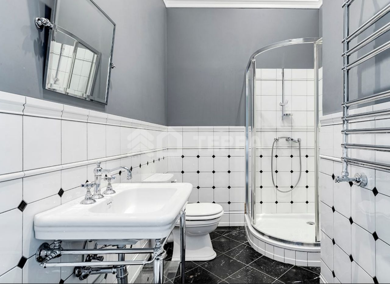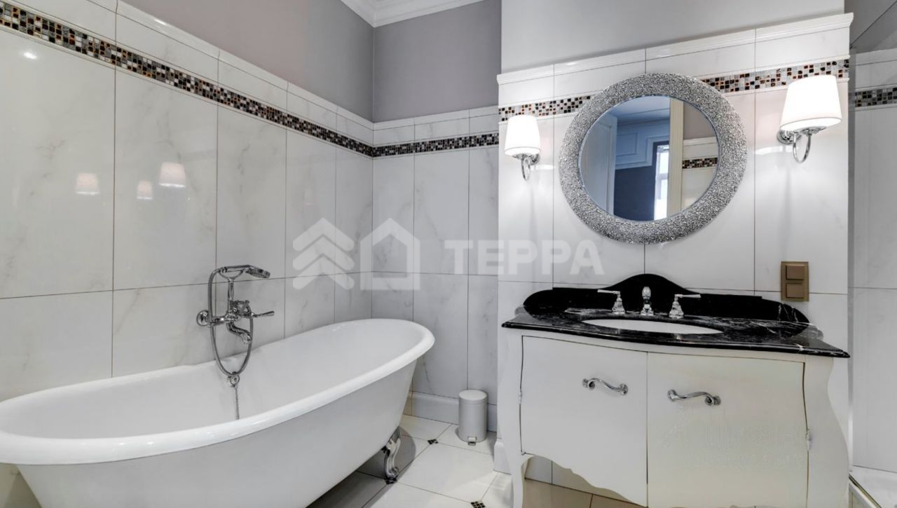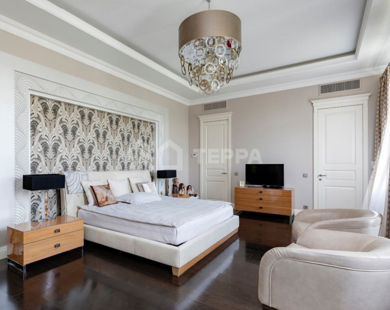 Этот современный трехэтажный дом включает 6 уютных спален и 9 санузлов. На участке также есть гараж с квартирой для персонала – идеальный вариант для вашего удобства.