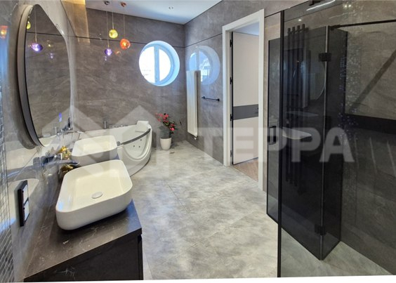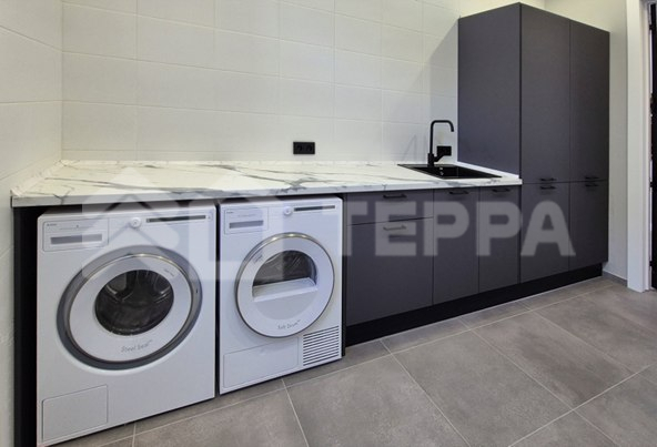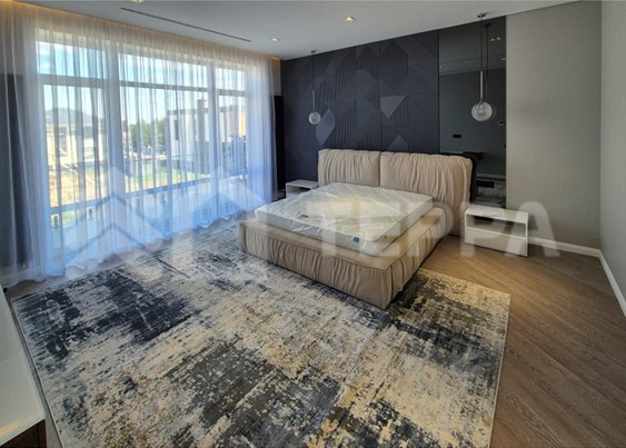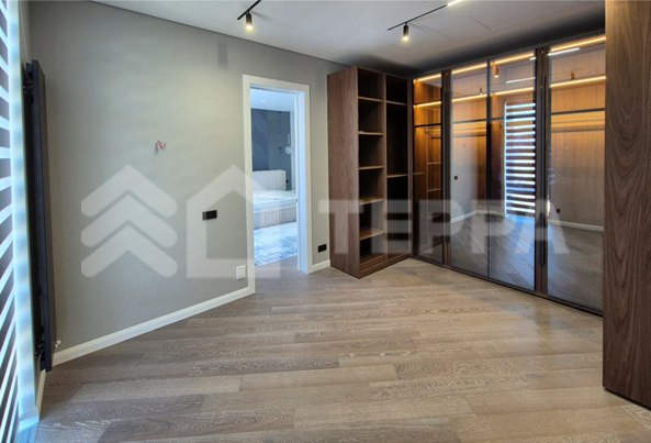на 2 этаже: Холл и лестничный проем освещается большим окном h 6 м.; Мастер спальня 60 кв. м: спальня 27 кв.м. с выходом на балкон (ограждение балкона двойным стекло), Гардероб 19 кв.м., установлена гардеробная от студии "Giulia Novars"; Ванная комната с окном 12,5 кв. м., просторная душевая, угловая ванна с массажем пр. B&W, каменная тумба - столешница на две раковины, подогрев пола. Сантехника - встраиваемая, Жилая комната (№ 1) 31 кв. м. + с/у 7 кв. м. установлена ванна 1800мм; Жилая комната (№ 3) 18,5 кв. м., собственная ванная комната 6 кв. м., гардеробная 5 кв. м.; Жилая комната – Кабинет (№4) 28,6 кв. м. гардеробная зонирована стеклянной перегородкой; Постирочная с мебелью 10 кв. м установлены стиральная и сушильная машины пр. ASKO.