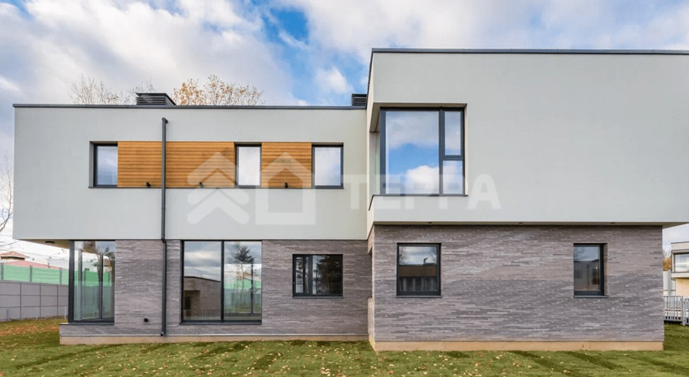 Дом с готовым облицованным фасадом (плитка/планкен/штукатурка) и интерьером под отделку. Все центральные коммуникация заведены в дом.