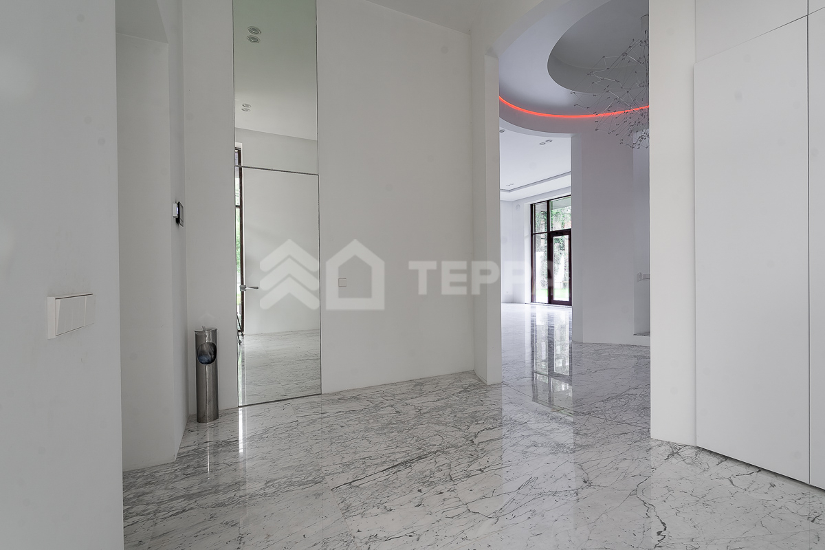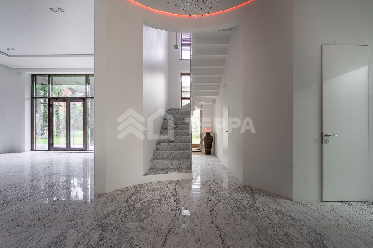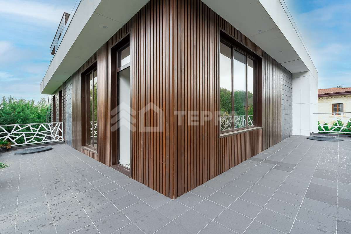 отдельным входом. Архитектурные и инженерные решения: дом построен из газосиликатных блоков, предусмотрена система канального кондиционирования, фасады из фиброцементных панелей и лиственницы, фасадная и интерьерная подсветка "Центрсвет".
