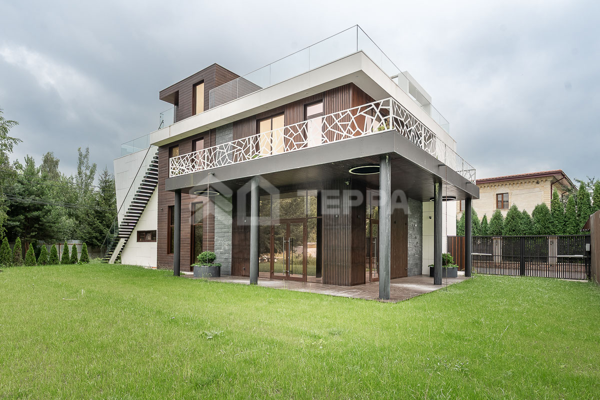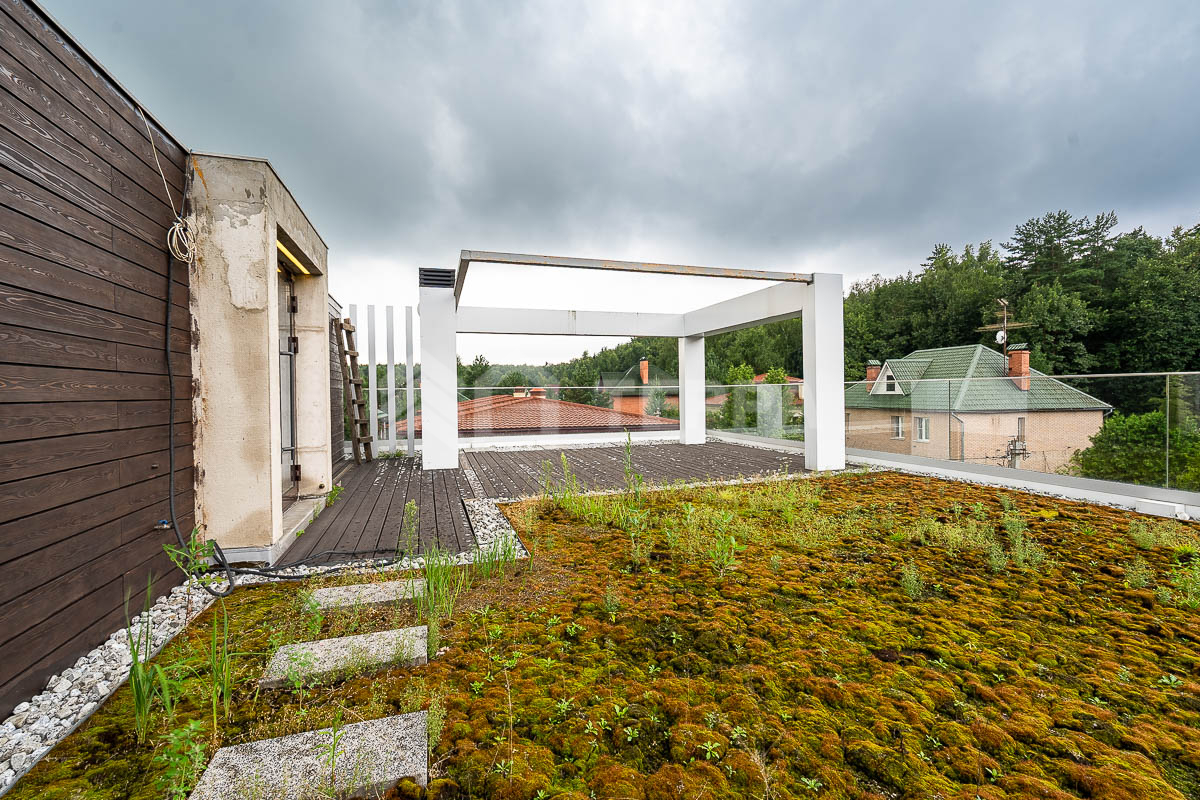 Лучшая альтернатива квартире в 4-ёх км от МКАД. Новый 3-ёх этажный загородный дом в стиле минимализм в охраняемом КП "Трёхгорка-5" (Сколково). Дом представлен в отделке "под ключ без мебели". Особенности дома: офисный блок с отдельным входом и парковкой, 100м2 зелёных кровельных террас, потолки высотой 4 метра, система "умный дом". Планировочные решения: 3 спальни, офис с отдельным входом, кухня гостиная с выходом на крытую террасу, минимальная потеря площади участка за счет посадки дома и эксплуатируемой кровли с