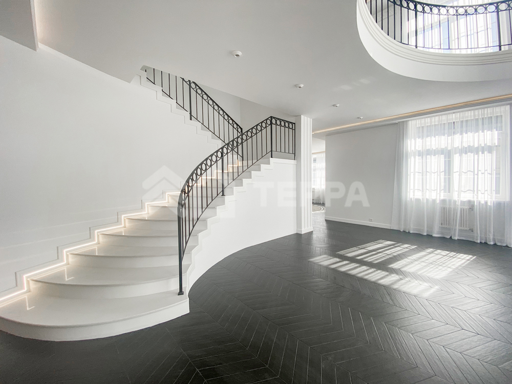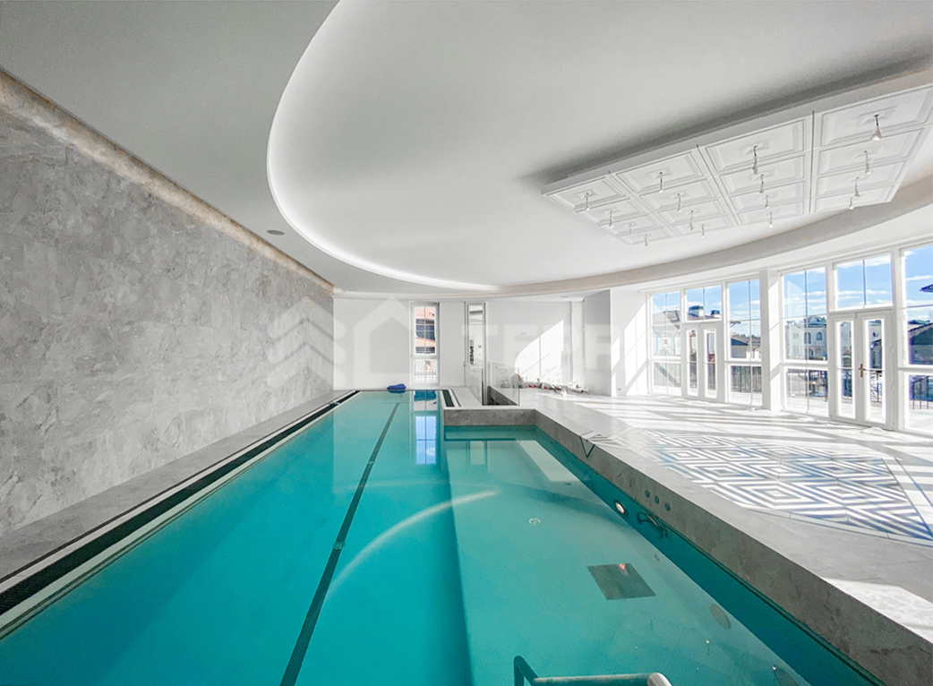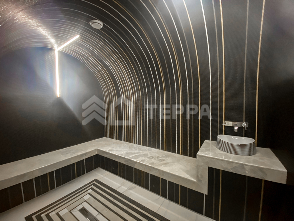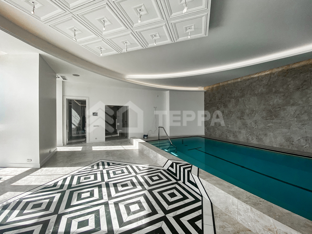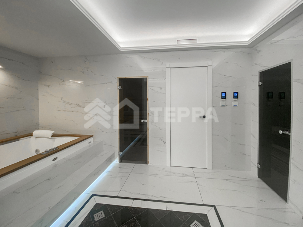 - СПА-зона: бассейн, сауна, хамам, вход на террасу, гараж на 2 м/м с квартирой для персонала