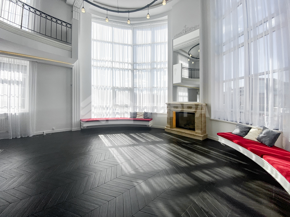 - гостиная со вторым светом и камином