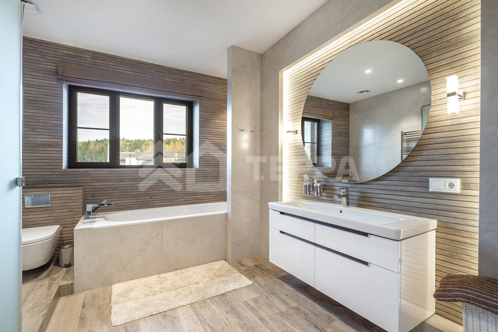 Функциональная планировка предполагает 5 спален, спортивный зал и много места для хранения Конструктив дома: монолитный, фундаментная плита. Ограждающие конструкции из пеноблока плотностью D900, фасад вентилируемый с утеплителем и клинкерным кирпичом.