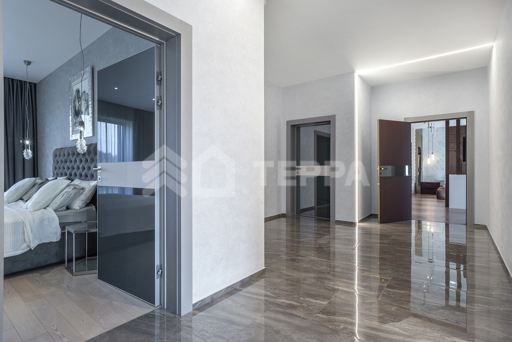 - мастер спальня с балконом санузлом и гардеробной