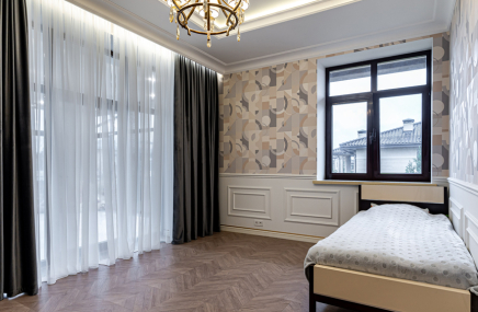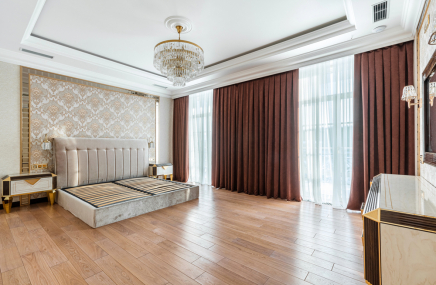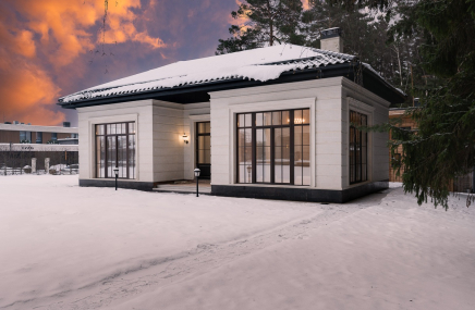 Дом построен по индивидуальному архитектурному проекту. Планировка продумана до мелочей: 5 спален, кабинет, просторная гостиная с вторым светом, кухня столовая, большой камин с панорамной топкой, сауна, комната отдыха, купель/гидромассажная ванна на открытом воздухе,