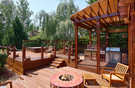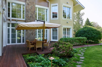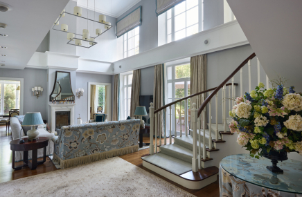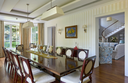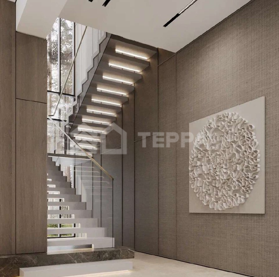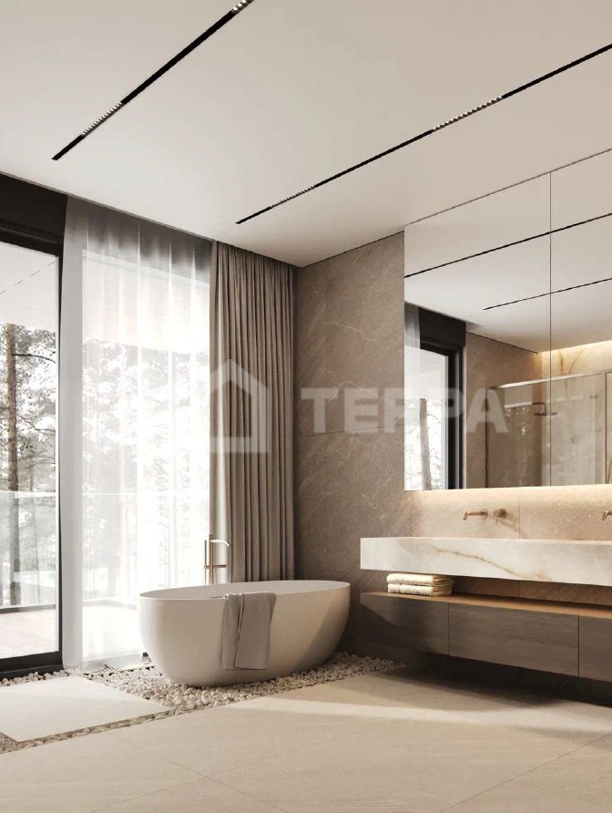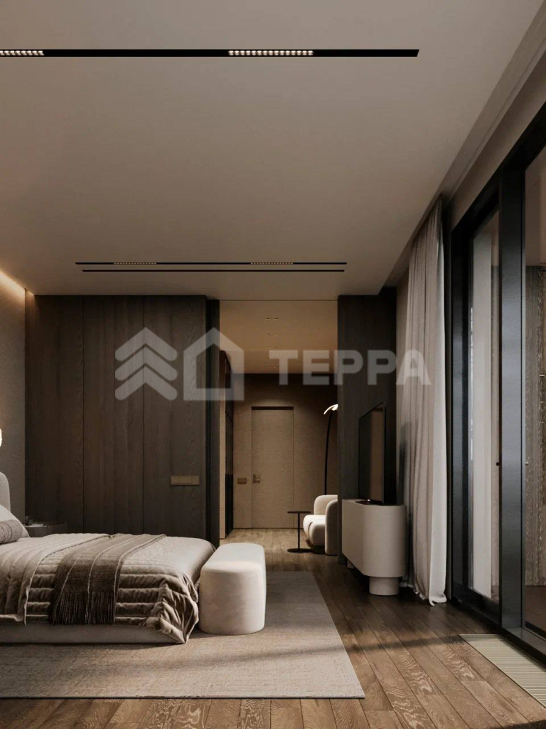 Каждый элемент дома говорит о качестве: натуральные ткани, итальянский лен, стильные обои и шпонированные поверхности. Оснащённый канальной системой вентиляции и кондиционирования, он гарантирует комфорт в любое время года.