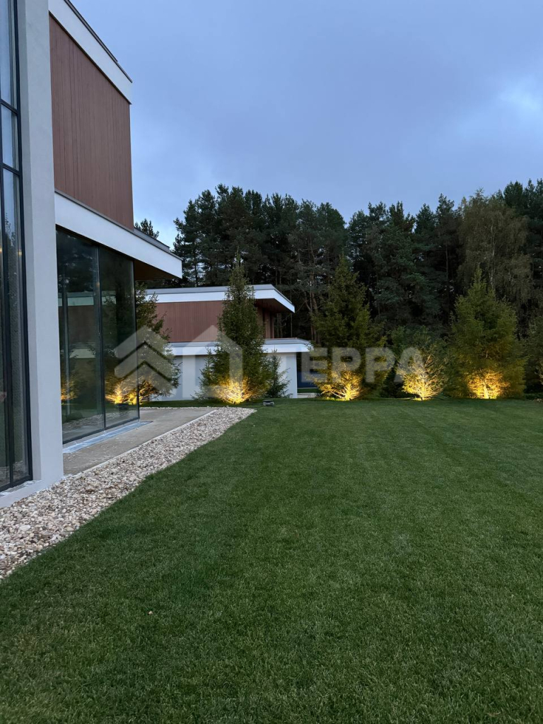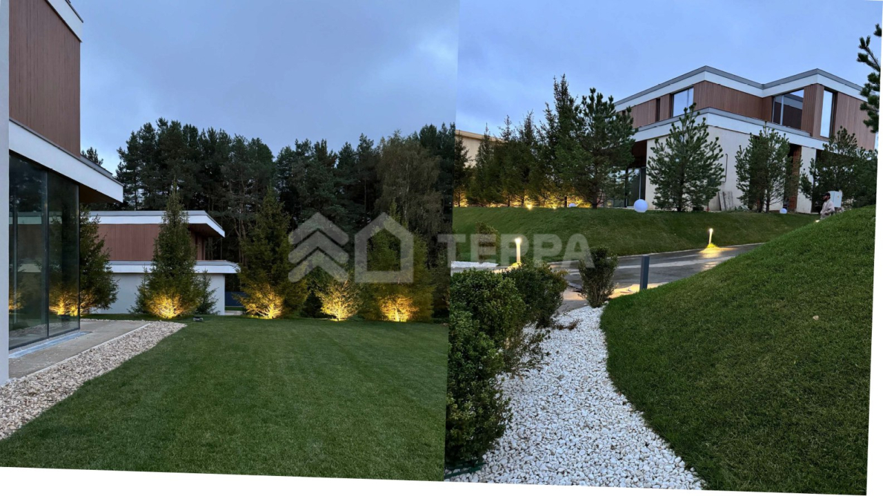На участке выполнено ландшафтное оформление, а дом будет полностью готов к проживанию в августе 2025 года.