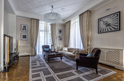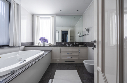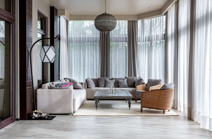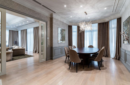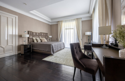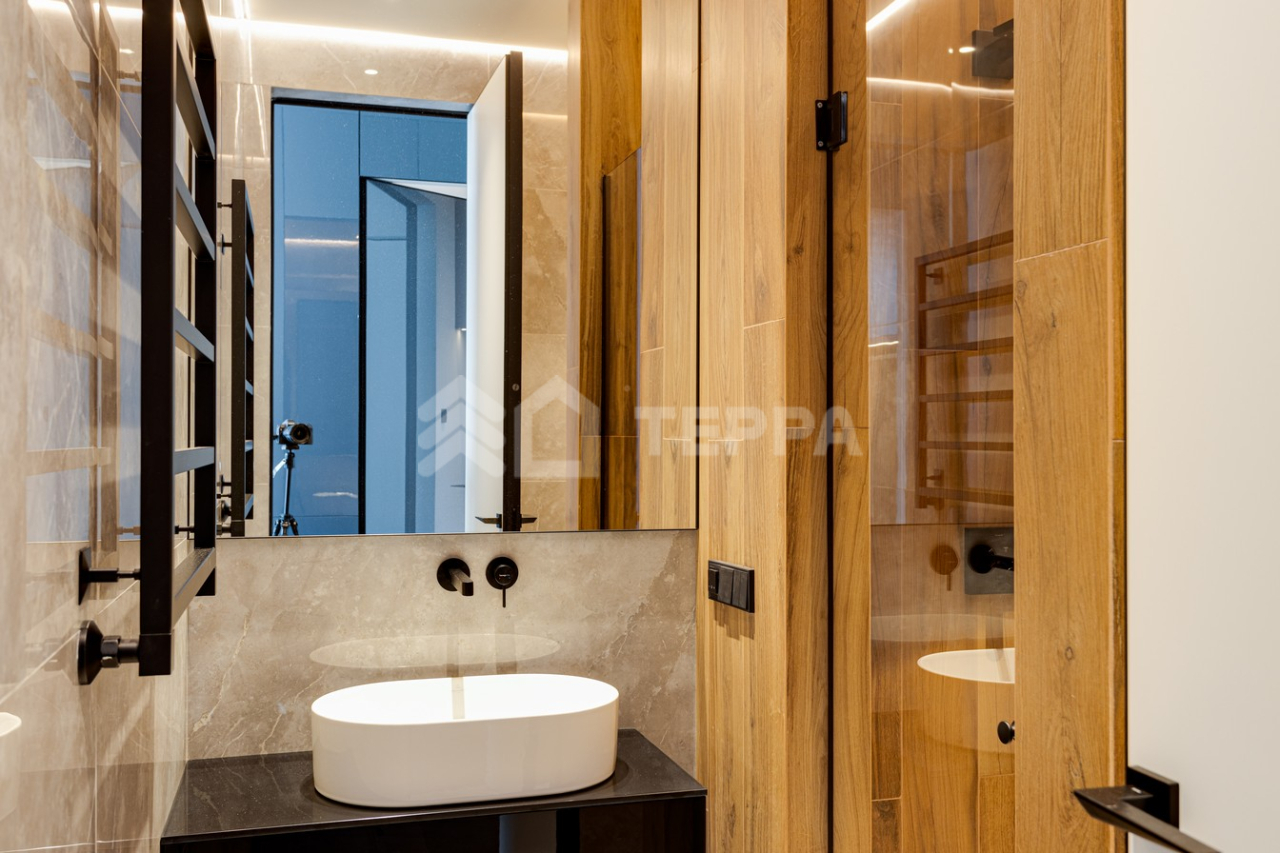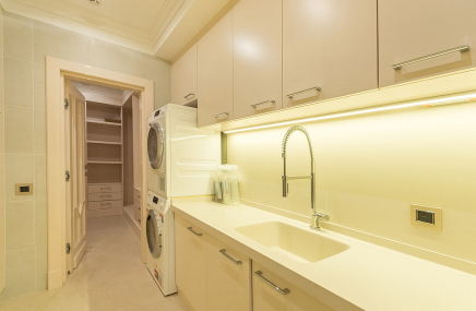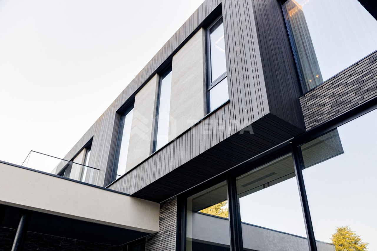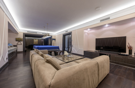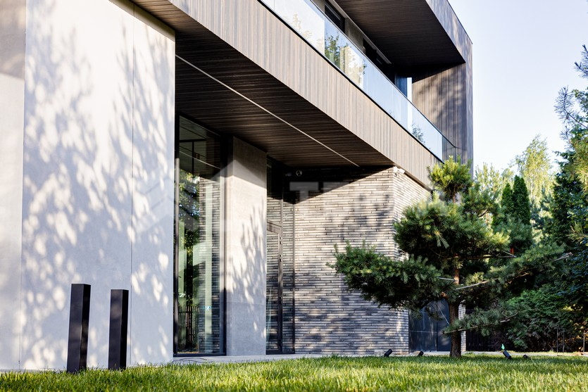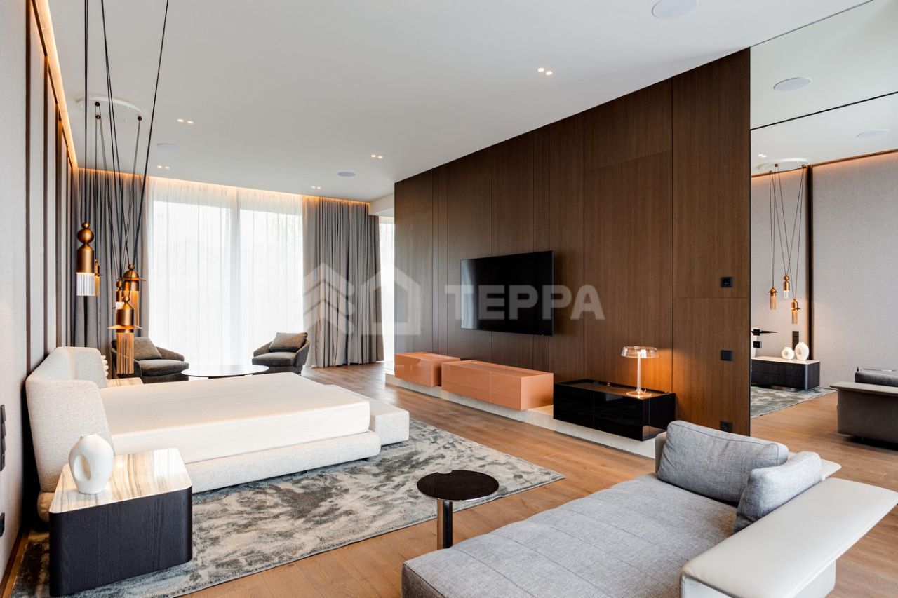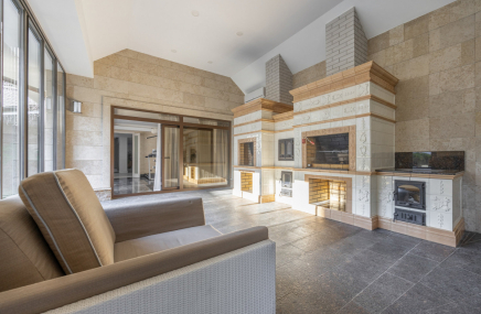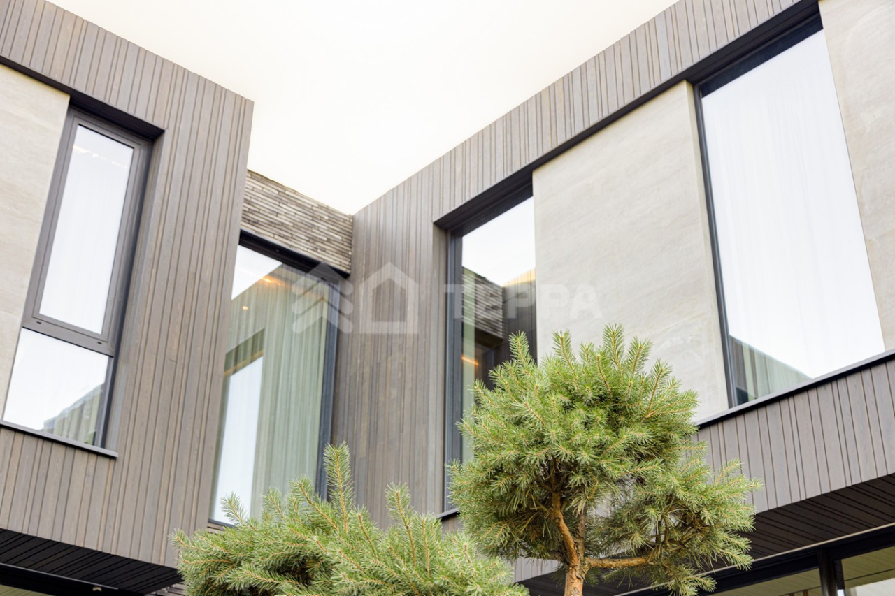 Четкое функциональное зонирование разделяет дом на приватные, общественные, СПА зоны и служебный блок. Высококачественные отделочные материалы, такие как керамика LAMINAM и натуральный камень, подчеркивают стиль и изящество.