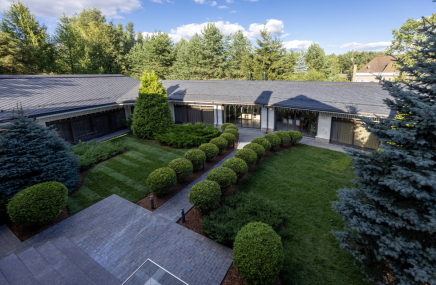 Данный дом предлагает великолепную композицию из вытянутых прямоугольных блоков, создающих приватный двор, изолированный от соседей. Панорамные раздвижные стеклянные порталы открывают вид на внутренний двор, наполняя пространство светом.