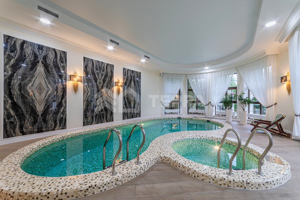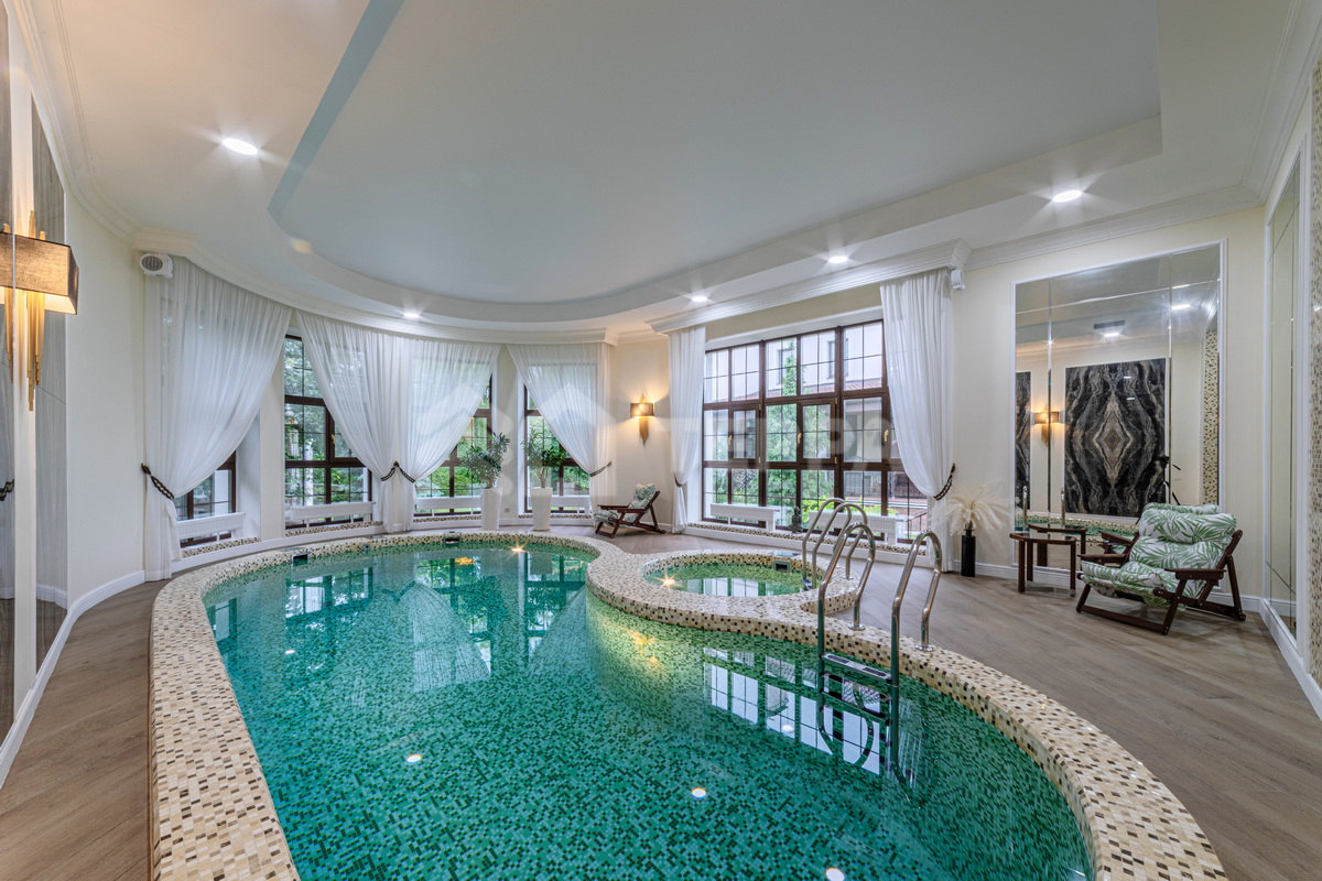 SPA-комплекс (262 м?) с бассейном, сауной, тренажерным залом и отдельными апартаментами для персонала. Отдельная BBQ-зона (40 м?).