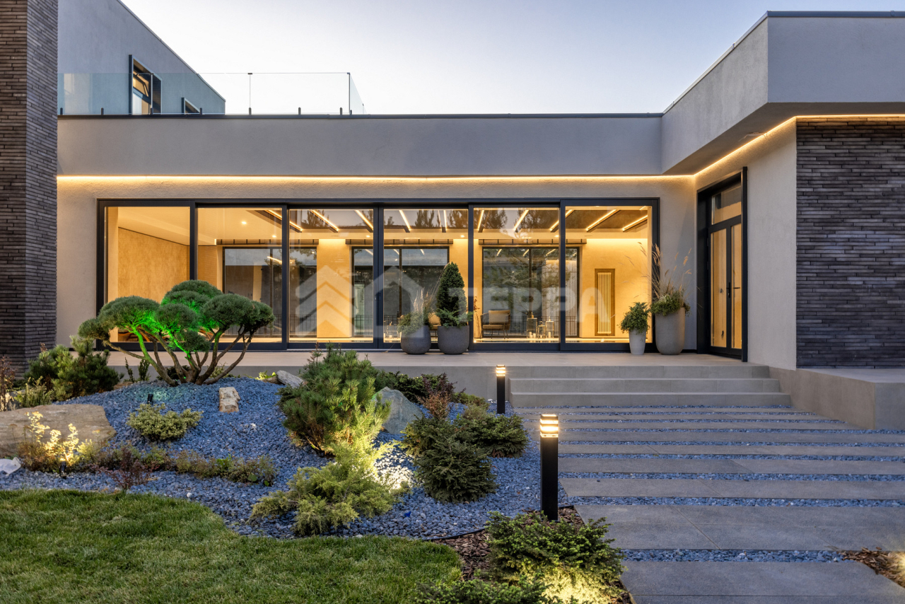 Просторная терраса, собственный бассейн и SPA-зона, понорамные окна и высокие потолки, отдельная квартира для персонала обеспечивает максимальный комфорт проживания.
