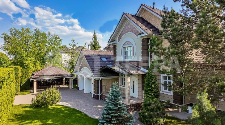 Для внутренней отделки использованы исключительно натуральные и высококачественные материалы, которые дополняются элегантной мебелью премиум-класса и современной бытовой техникой Gaggenau (Германия). Система освещения Martini (Италия) подчеркивает каждую деталь интерьера, а система кондиционирования Mitsubishi поддерживает идеальный микроклимат круглый год. Теплый гараж дополнен удобным навесом для автомобиля. Территория благоустроена, украшена декоративными растениями и окружена живым зеленым забором из высоких туй.