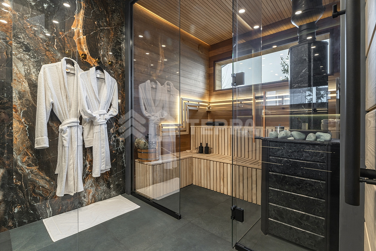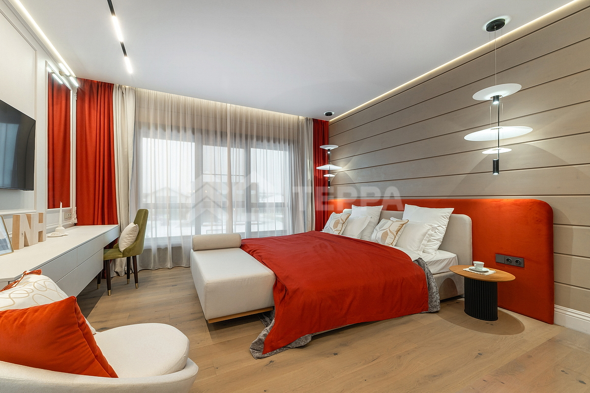 Дом оснащен системой "умный дом", установлена приточно-вытяжная вентиляция с системой увлажнения, встроенная система ароматизации воздуха, все коммуникации центральные: газоснабжение, электроснабжение, водоснабжение, канализация.