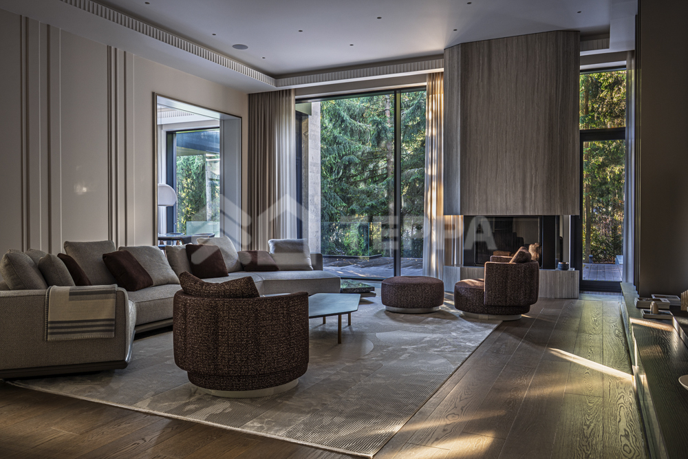 - просторная гостиная 70 м? с дровяным камином