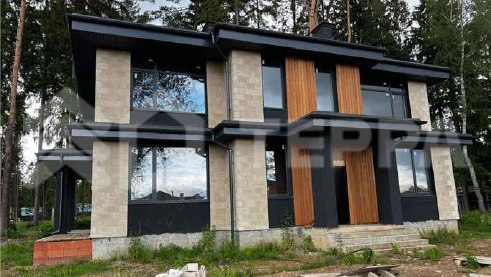 Конструкция и материалы: плоская современная вентилируемая кровля, фасад из природного камня, капитальный фундамент и толстые каменные стены, широкоформатное остекление, наполняющее дома естественным светом.