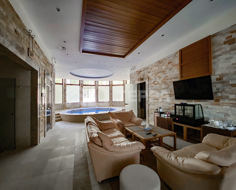 Закрытый строгоохраняемый клубный поселок с инфраструктурой: СПА-комплекс с огромным бассейном, баней, сауной, хаммамом, массажные кабинеты, салон красоты, теннисные корты, тренажерный зал, клубный дом (банкетные залы, ресторан, конференц-зал, кинозал)