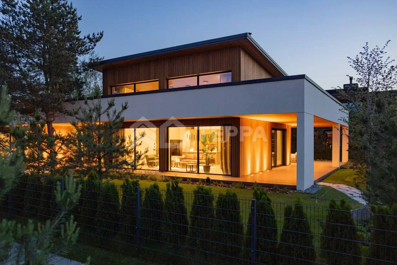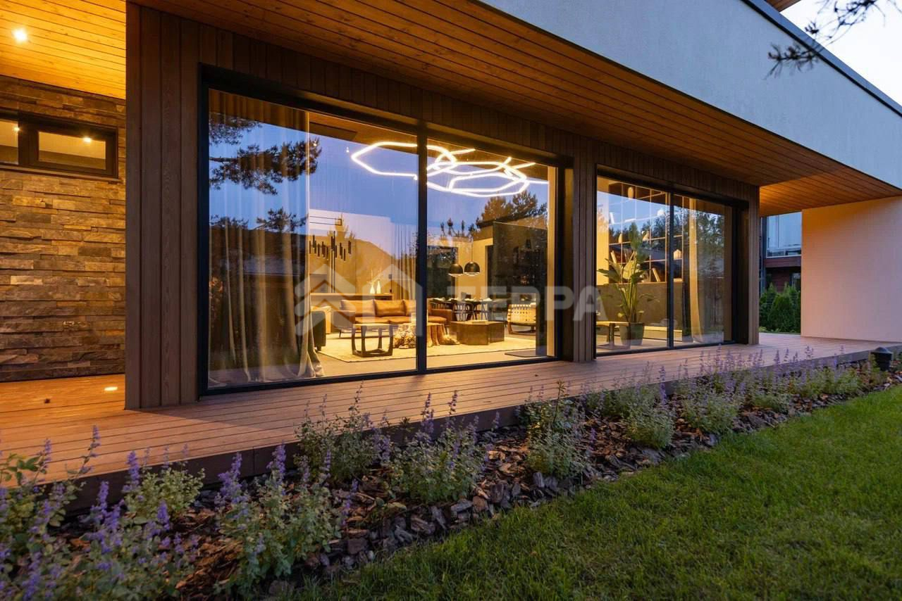 Одноэтажный дом премиум-класса в коттеджном поселке Gorki Lake был спроектирован с использованием принципов теневого проектирования и глубокого анализа природного контекста: архитектором были изучены рельеф, климат, метеоданные, роза ветров и траектория движения солнца.