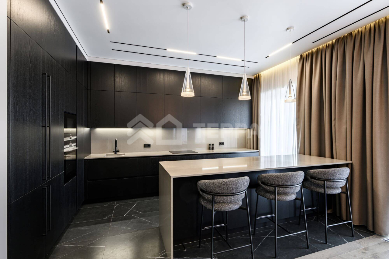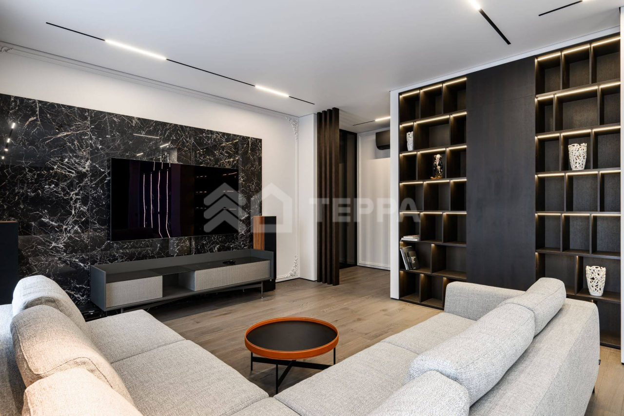 Сделан высококачественный ремонт в современном стиле. Квартира полностью меблирована премиальными брендами, установлена вся необходимая техника. Шкафы и письменный стол изготовлены по индивидуальному заказу. ПРЕМИАЛЬНЫЕ БРЕНДЫ: Мебель: Galigaris (Италия), Ditre italiа, Bo Сoncept, Rochebobois; Гардеробная и стеклянные перегородки: Cascate; Полы: дубовый паркет Coswic, итальянский керамогранит; Сантехника: Villeroy & Boch; Кухня: Benova (Италия); Кухонная техника: Siemens; Стиральная и сушильная машины: Asko; Телевизоры: LG OLED.