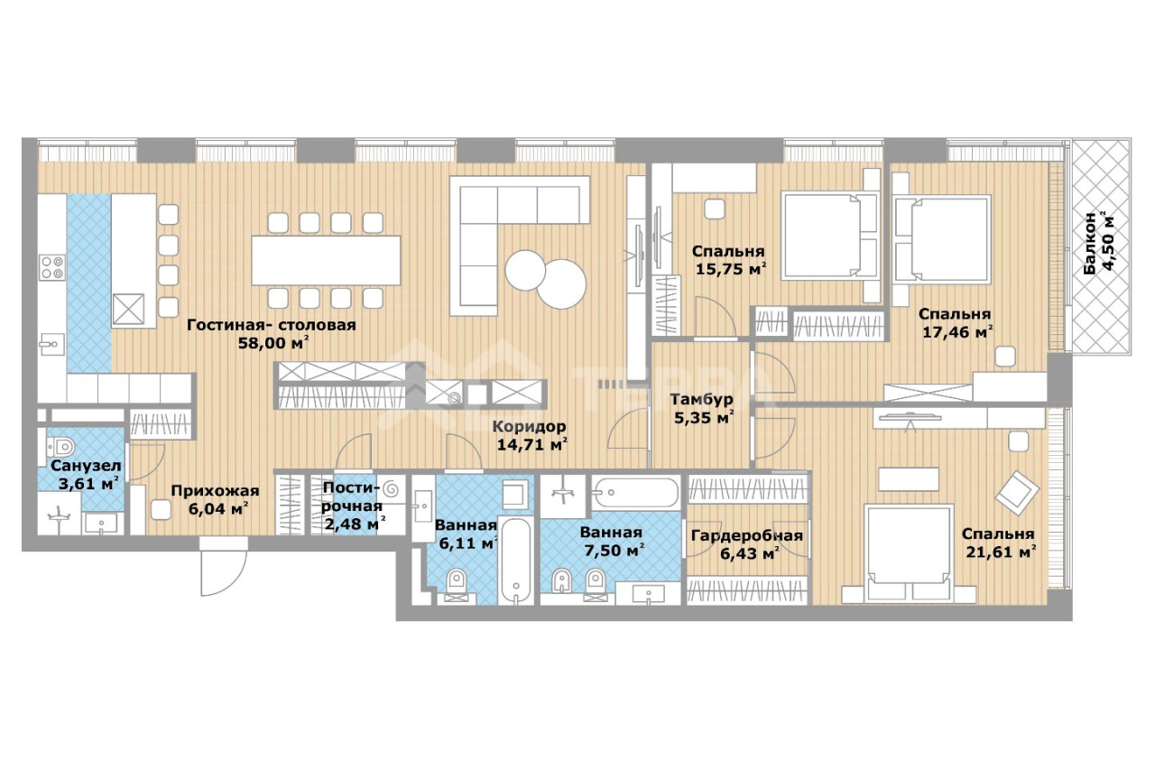 Новая квартира для истинного ценителя роскоши. Расположена в современном малоэтажном клубном жилом комплексе Level Barvikha Residence, всего в 6 км от МКАД По Рублево-Успенскому шоссе в окружении хвойного леса. 4-х комнатная квартира площадью 173 кв.м. расположена на втором этаже. Имеется просторная гостиная, совмещенная с кухней и столовой, 3 спальни, 3 с/у, постирочная. В стоимость входят кладовая и 3 м/м, удобно расположенные возле лифта.