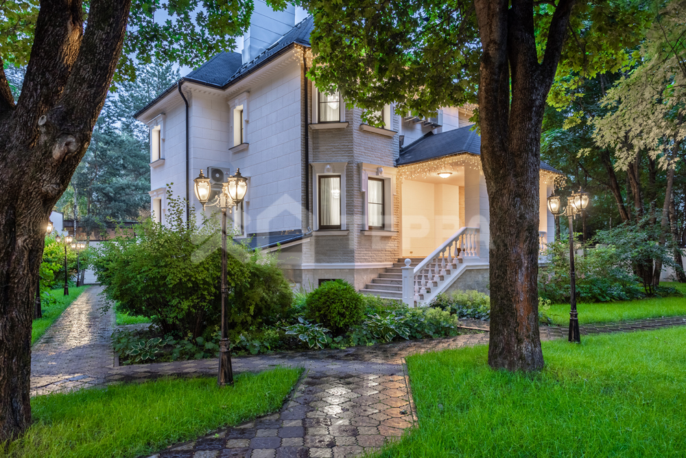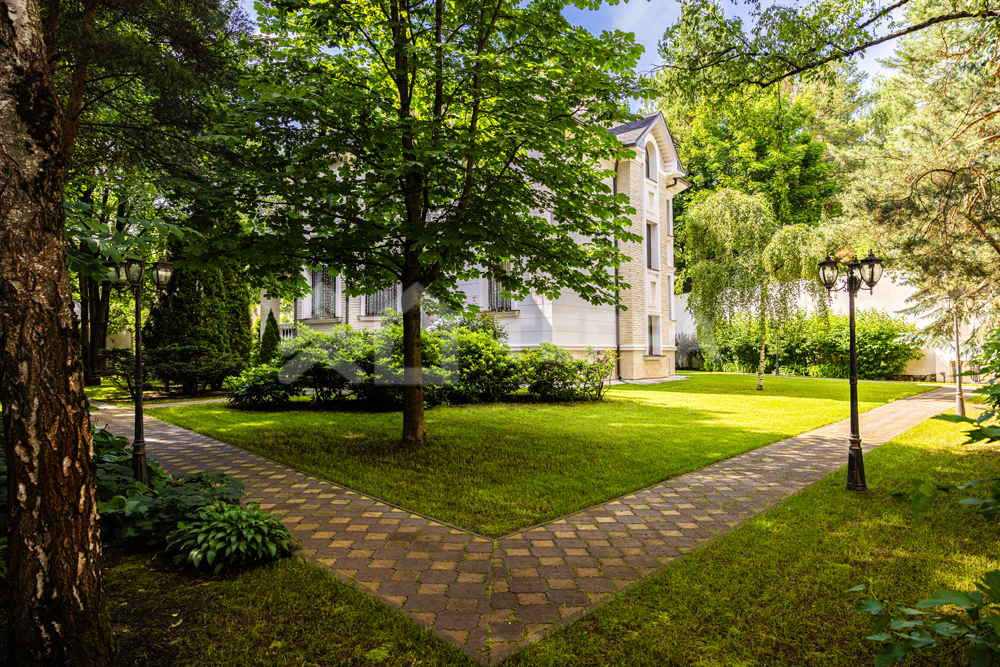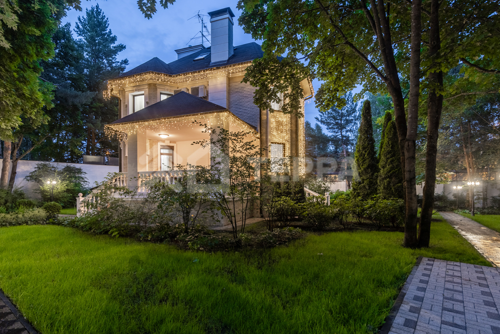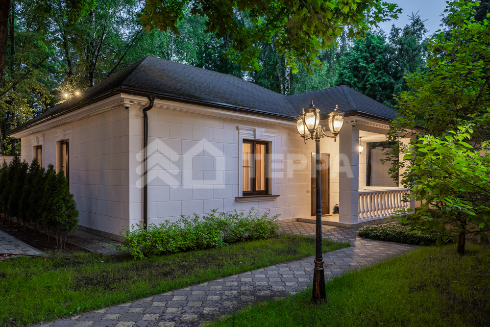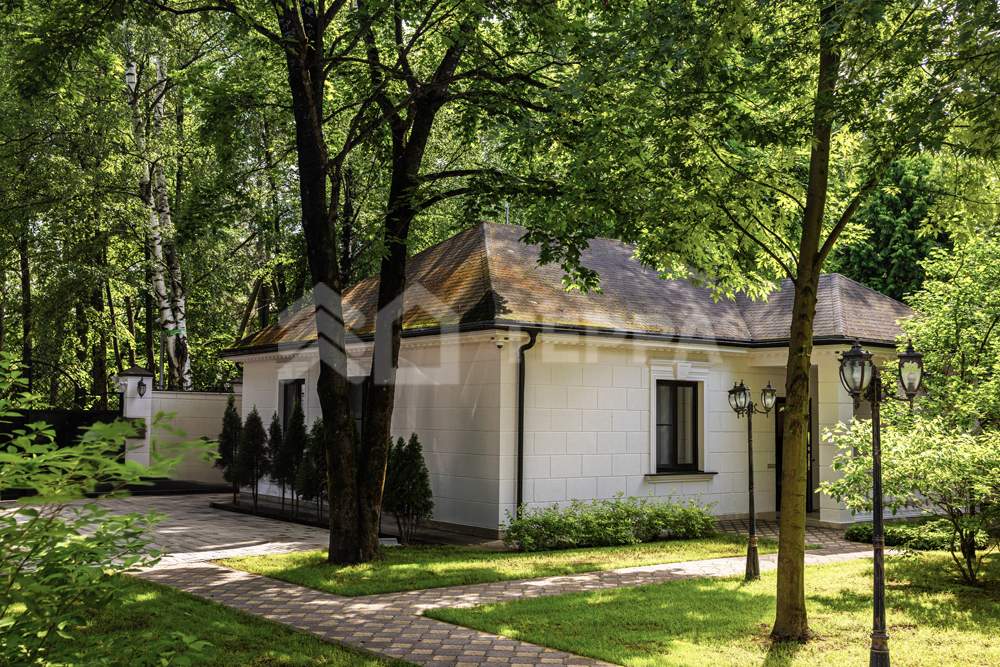 На лесном участке правильной формы площадью 20 соток расположены 3 строения: основной дом, гостевой дом с помещением для персонала и барбекю беседка. Выполнен ландшафтный дизайн, система авто полива. По периметру установлены датчики охраны и камеры.