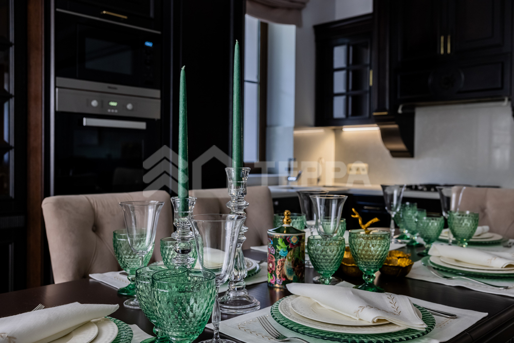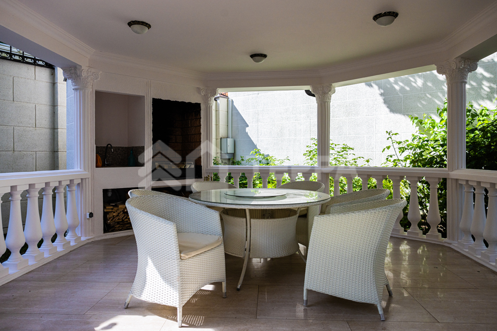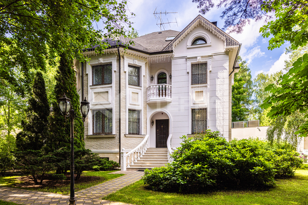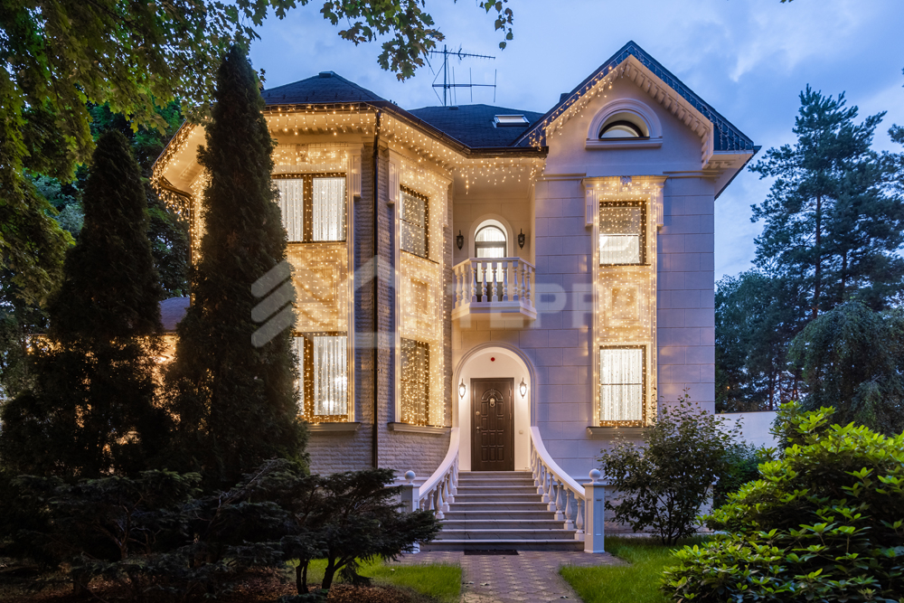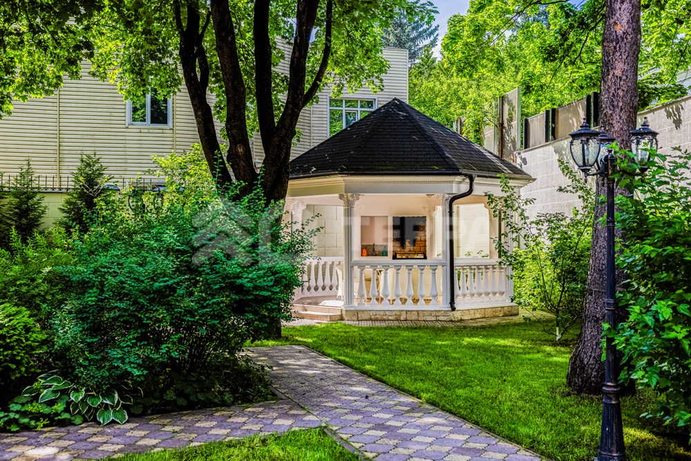На лесном участке правильной формы площадью 20 соток расположены 3 строения: основной дом, гостевой дом с помещением для персонала и барбекю беседка. Выполнен ландшафтный дизайн, система авто полива. По периметру установлены датчики охраны и камеры.