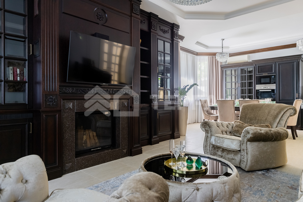 - кухня-гостиная с камином и выходом на террасу