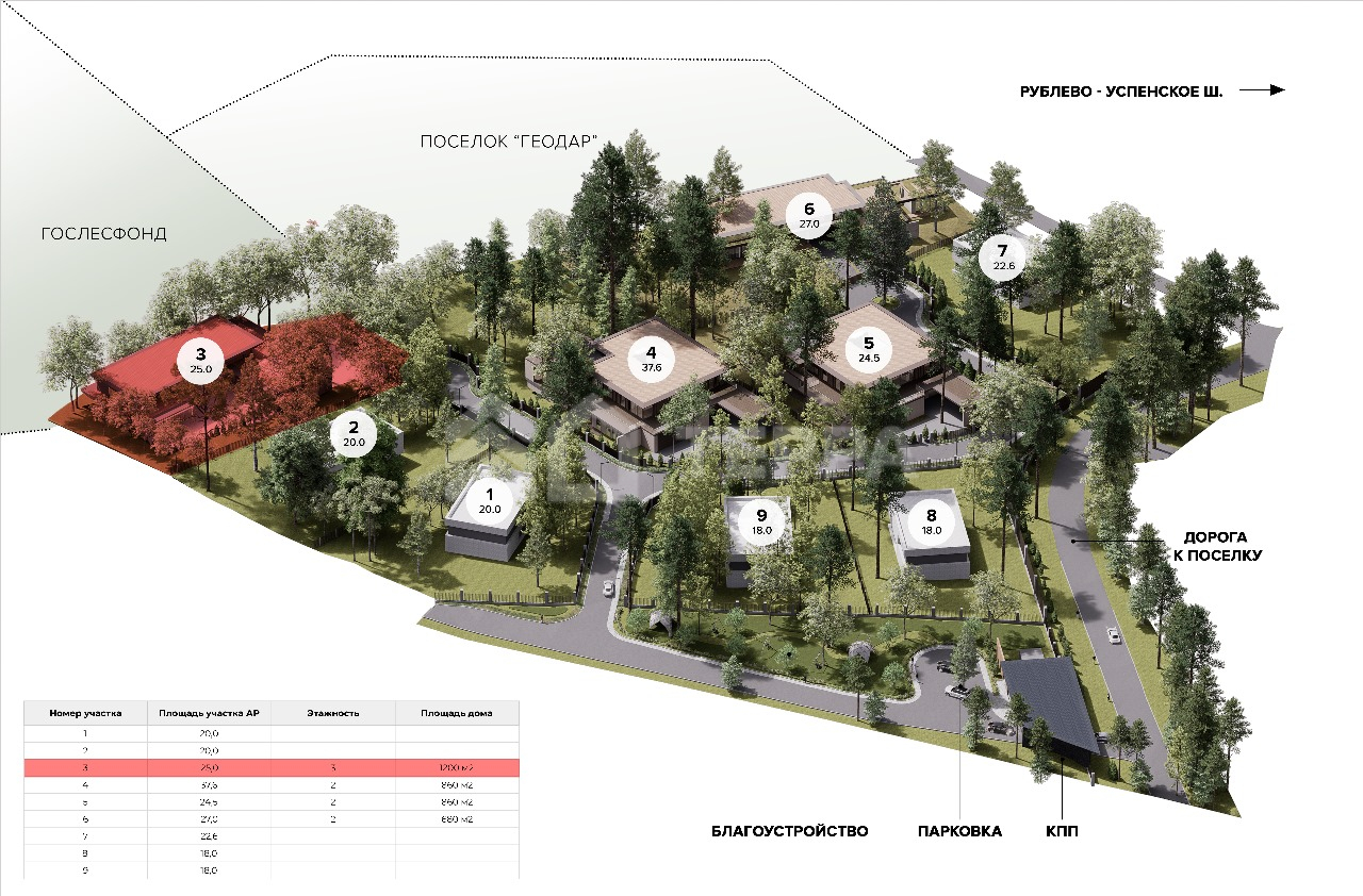 На террасном ландшафте, в окружении взрослых деревьев (сосен, елей) расположились ваши домовладения. Каждый участок здесь спроектирован так, чтобы расположенный на нем дом имел эргономичную планировку, роскошные виды, и конечно же уединение. Каждый дом здесь спроектирован в современном и гармоничном стиле органической архитектуры.
