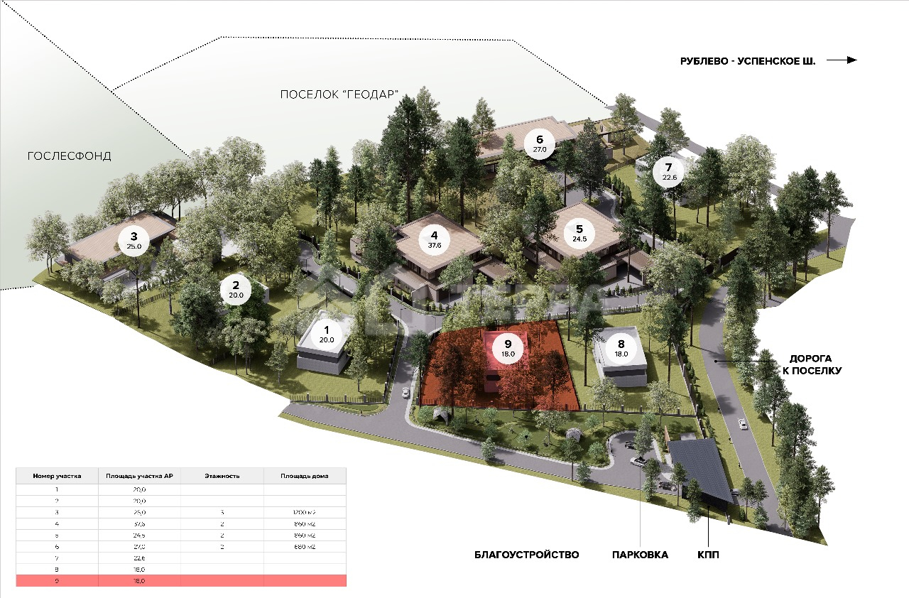 На террасном ландшафте, в окружении взрослых деревьев (сосен, елей) расположились ваши домовладения. Каждый участок здесь спроектирован так, чтобы расположенный на нем дом имел эргономичную планировку, роскошные виды, и конечно же уединение. Каждый дом здесь спроектирован в современном и гармоничном стиле органической архитектуры.
