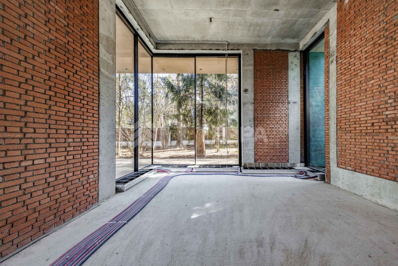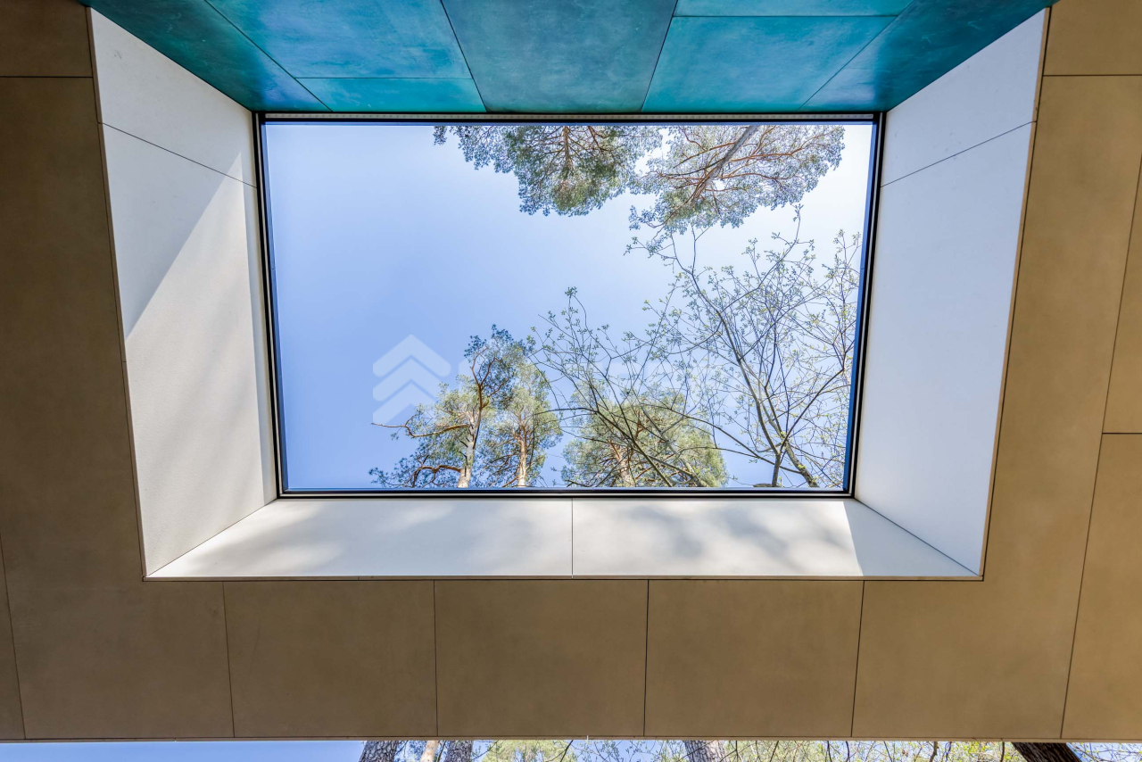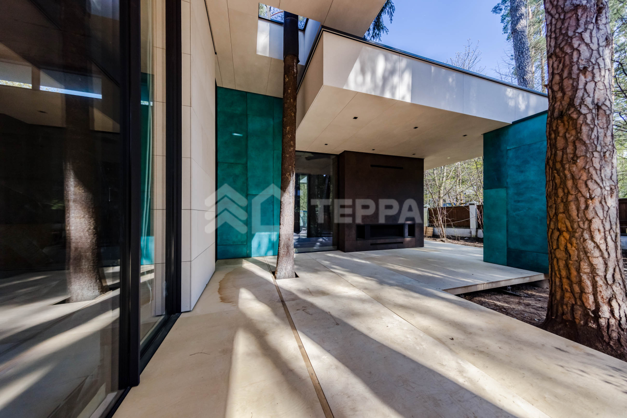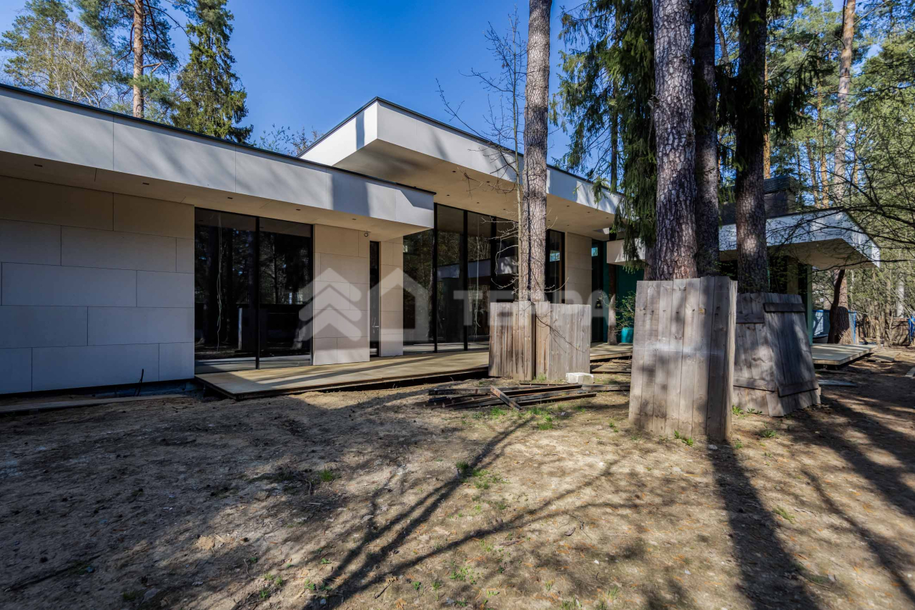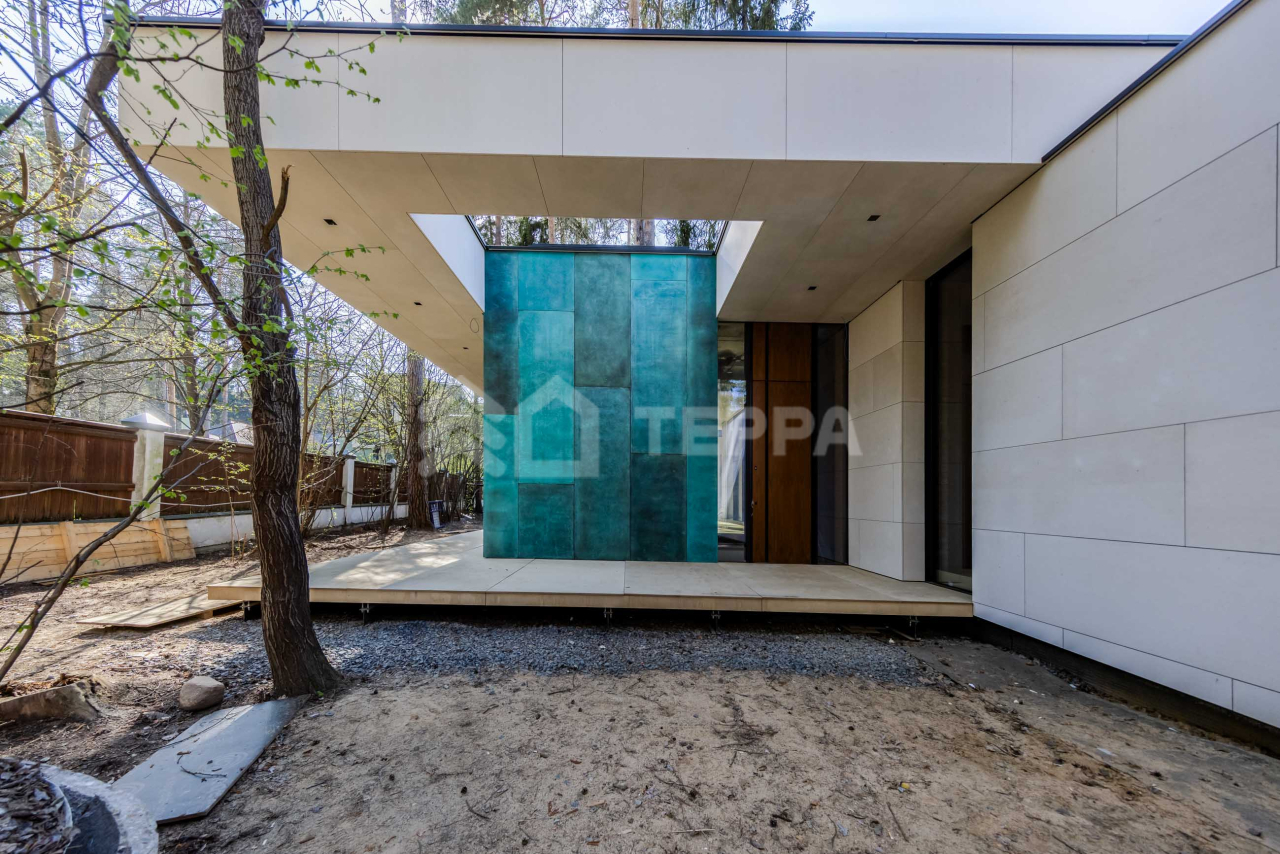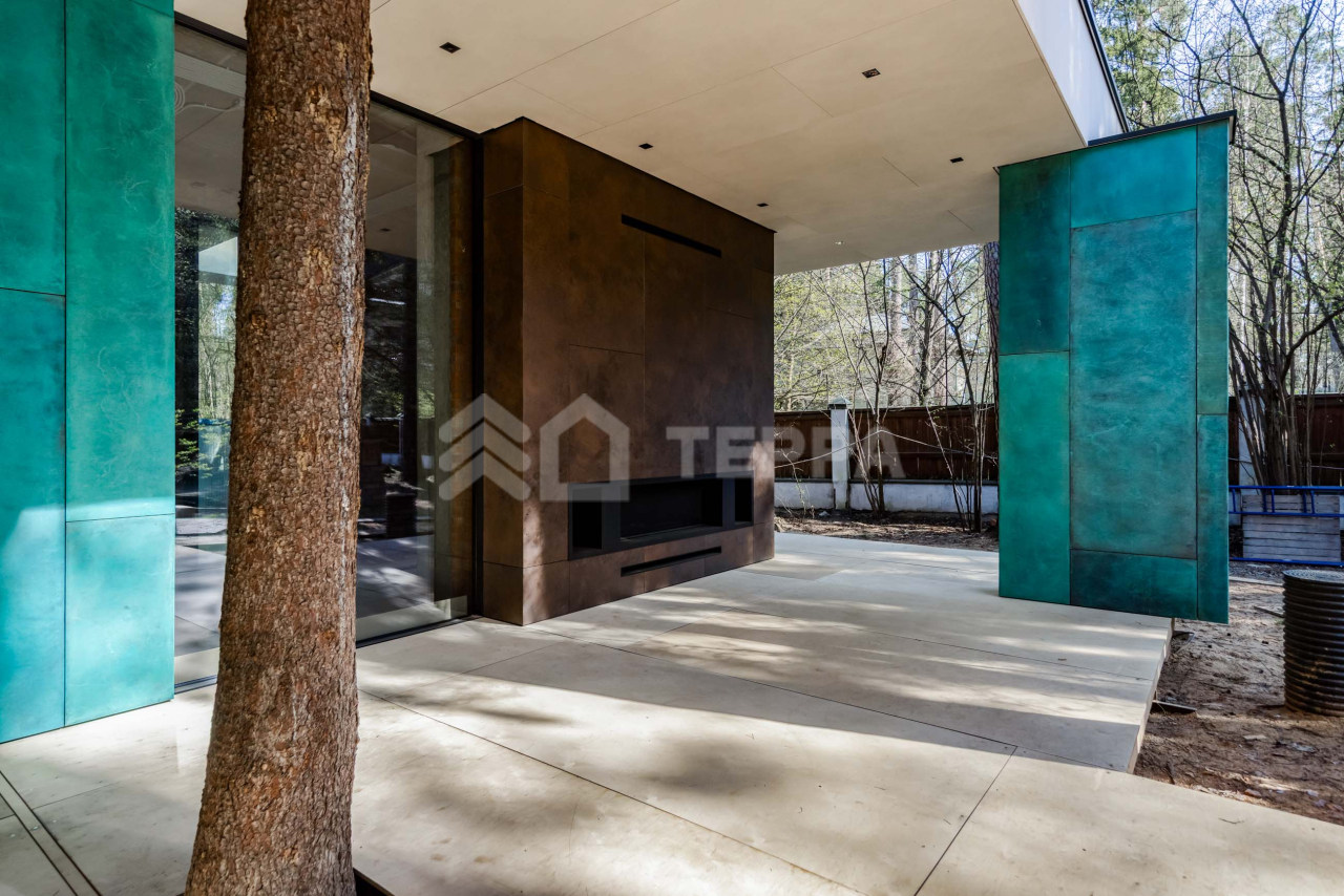 Планировка продумана до мелочей: просторный холл, несколько гардеробных и санузлов, каминный зал-столовая, основная и рабочие кухни с кладовыми, женский и мужской кабинеты (один из которых может служить спальней), отдельная зона для персонала с собственным входом, постирочная, бельевая, серверная, гараж на 3 машины и мастерская (имеет рядом с/у и можно сделать блок спальни). В жилой части — мастер-блок с будуаром, гардеробной, ванной и спальней, а также 2 детских блока. Проект по вентиляции предусматривает увлажнение, по электрике выполнялся с учётом возможности установить «умный дом». Высота потолков — впечатляющие 6 метров, это придаёт пространству объём и лёгкость. Имеется готовый дизайн-проект интерьеров от студии SL, выдержанный в лаконичном и современном стиле. Фасад дома выполнен из португальского известняка, натурального гранита, премиального керамогранита и патинированной меди, что создаёт эффектную и благородную архитектурную палитру. Выполнено фасадное освещение на европейском оборудовании премиального уровня. Установлены эксклюзивные окна Skyframe и профили Schuco, обеспечивающие максимум света, тепла и шумоизоляции. Дом уже введён в кадастр, функционирует отдельная котельная с двумя котлами Viessmann, а также своя скважина. Подведено 150 кВт электроэнергии, выполнен проект по вентиляции, слаботочным системам и освещению, установлены зенитные фонари.