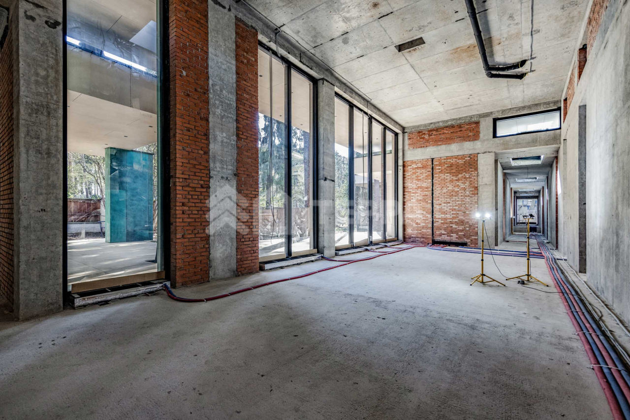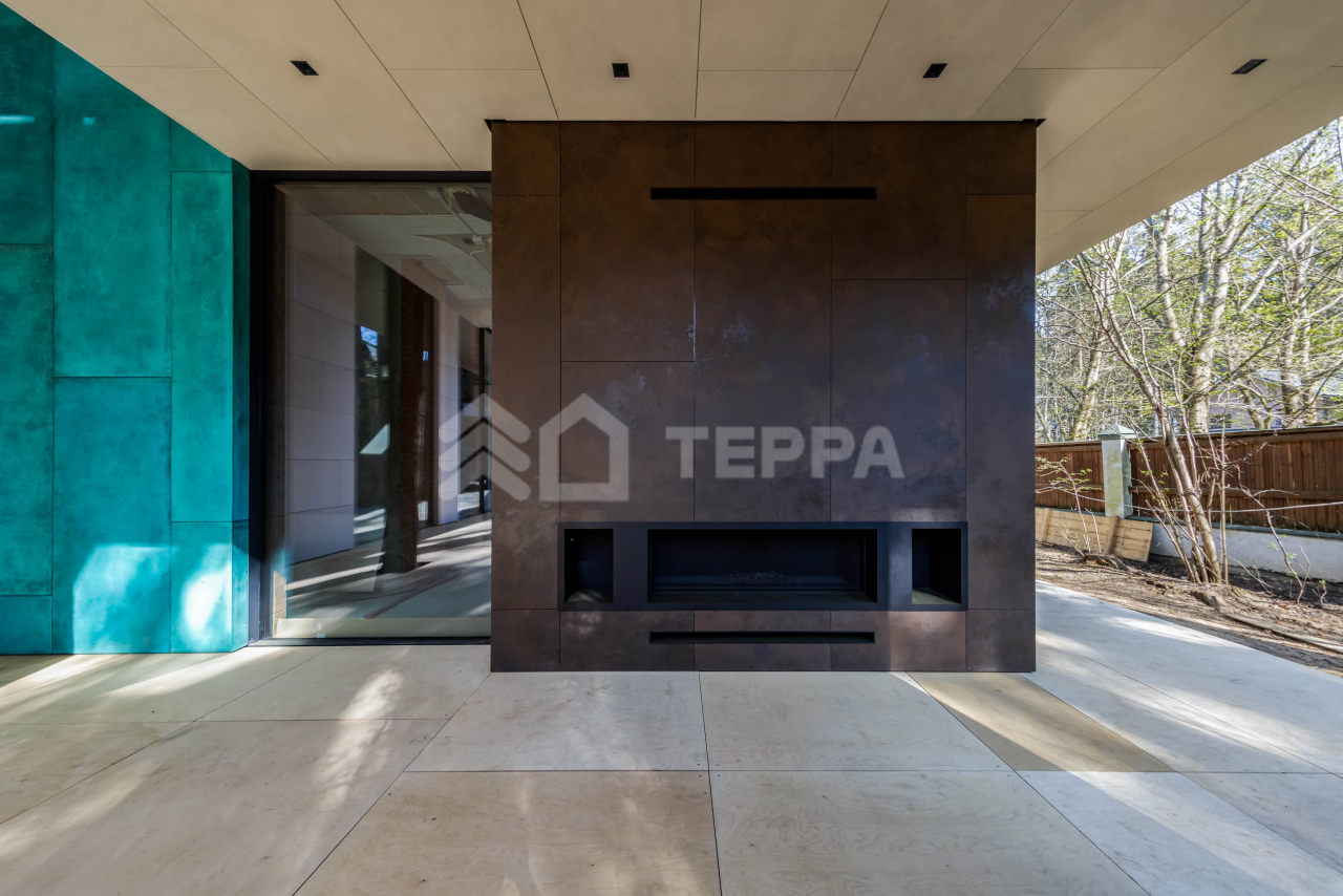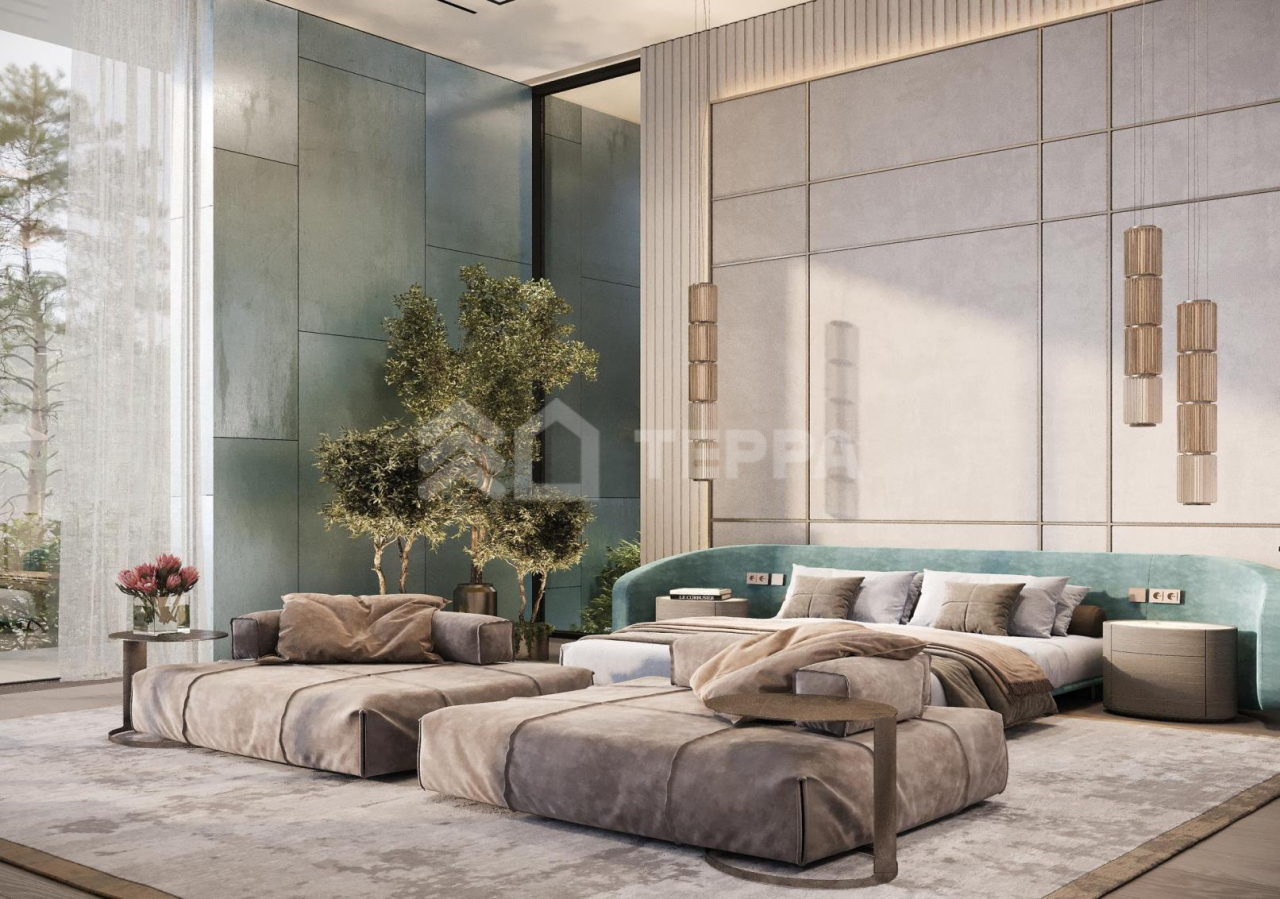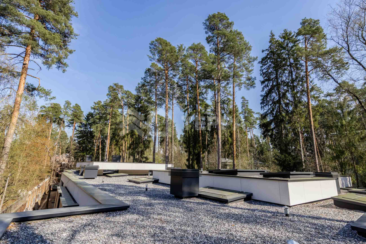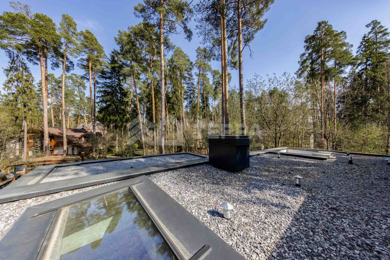 Планировка продумана до мелочей: просторный холл, несколько гардеробных и санузлов, каминный зал-столовая, основная и рабочие кухни с кладовыми, женский и мужской кабинеты (один из которых может служить спальней), отдельная зона для персонала с собственным входом, постирочная, бельевая, серверная, гараж на 3 машины и мастерская (имеет рядом с/у и можно сделать блок спальни). В жилой части — мастер-блок с будуаром, гардеробной, ванной и спальней, а также 2 детских блока. Проект по вентиляции предусматривает увлажнение, по электрике выполнялся с учётом возможности установить «умный дом». Высота потолков — впечатляющие 6 метров, это придаёт пространству объём и лёгкость. Имеется готовый дизайн-проект интерьеров от студии SL, выдержанный в лаконичном и современном стиле. Фасад дома выполнен из португальского известняка, натурального гранита, премиального керамогранита и патинированной меди, что создаёт эффектную и благородную архитектурную палитру. Выполнено фасадное освещение на европейском оборудовании премиального уровня. Установлены эксклюзивные окна Skyframe и профили Schuco, обеспечивающие максимум света, тепла и шумоизоляции. Дом уже введён в кадастр, функционирует отдельная котельная с двумя котлами Viessmann, а также своя скважина. Подведено 150 кВт электроэнергии, выполнен проект по вентиляции, слаботочным системам и освещению, установлены зенитные фонари.