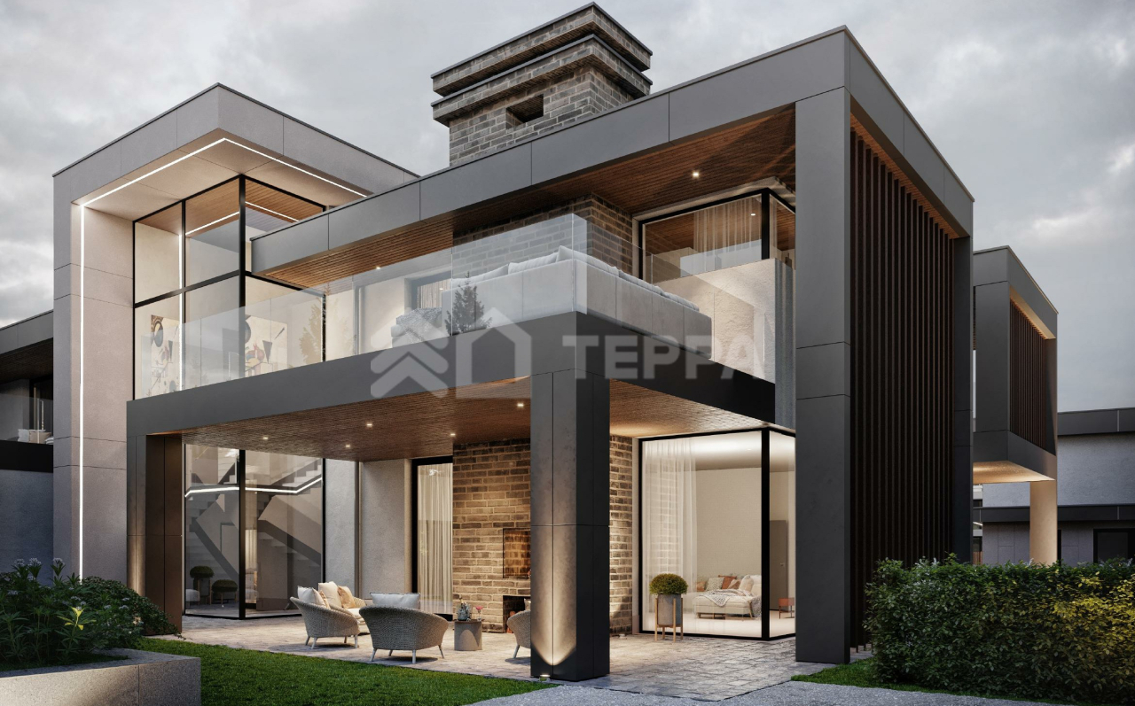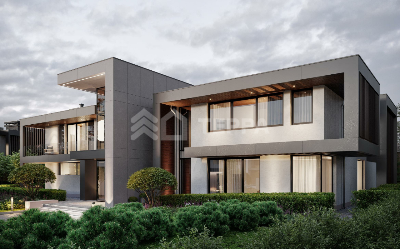 Абсолютно новый современный дом 1132 м2 под отделку расположен на приватном участке 24 соток.