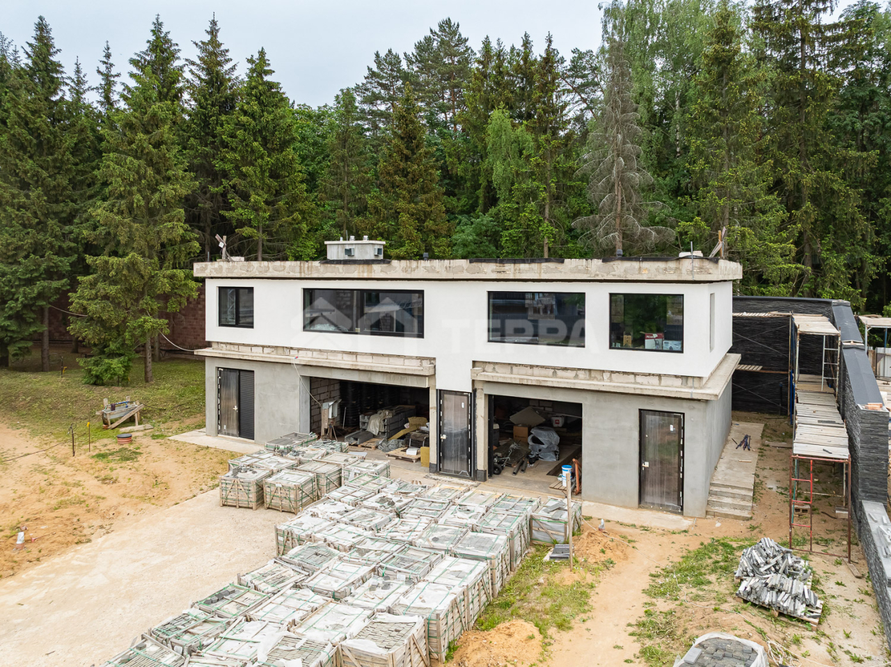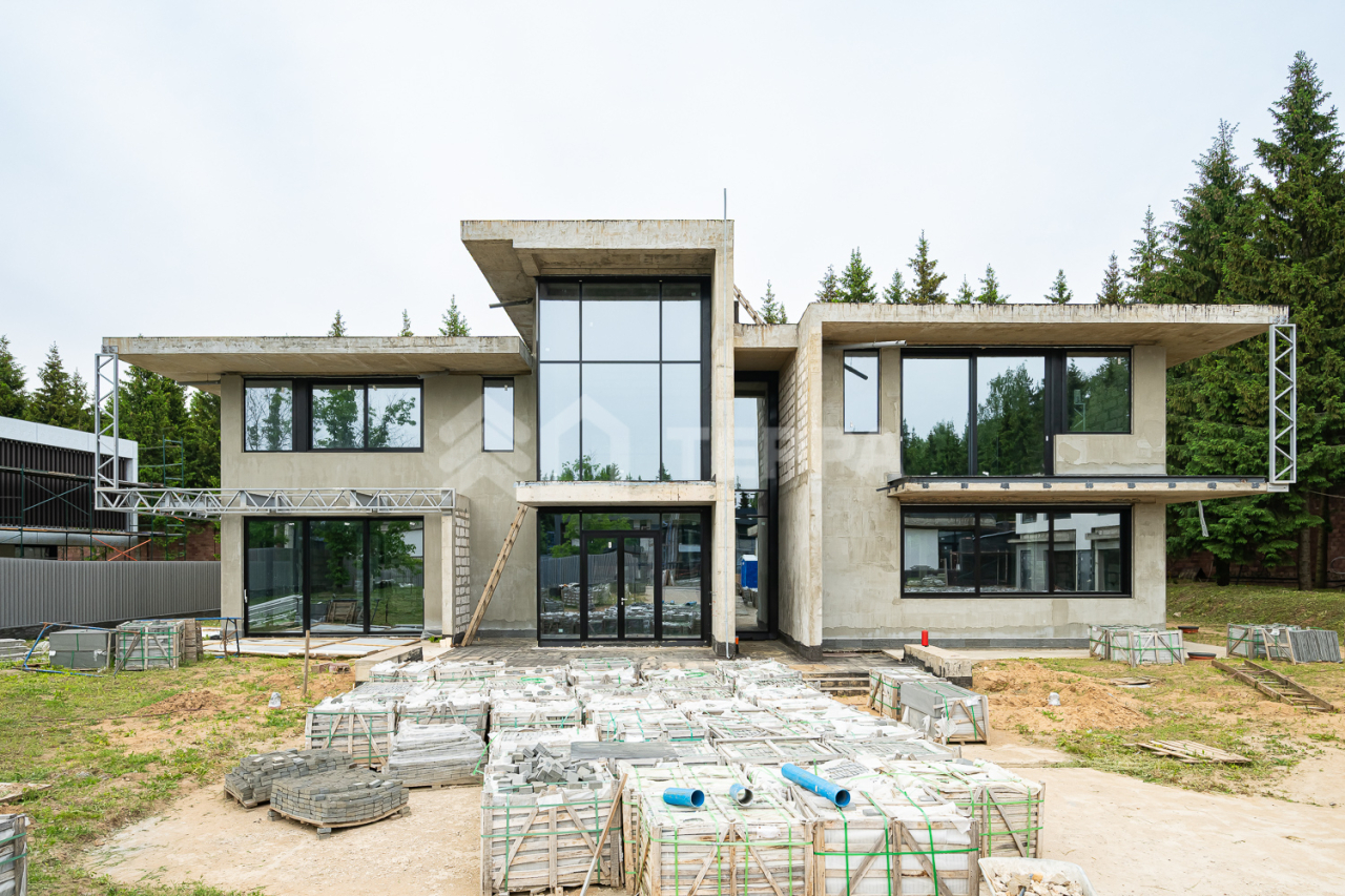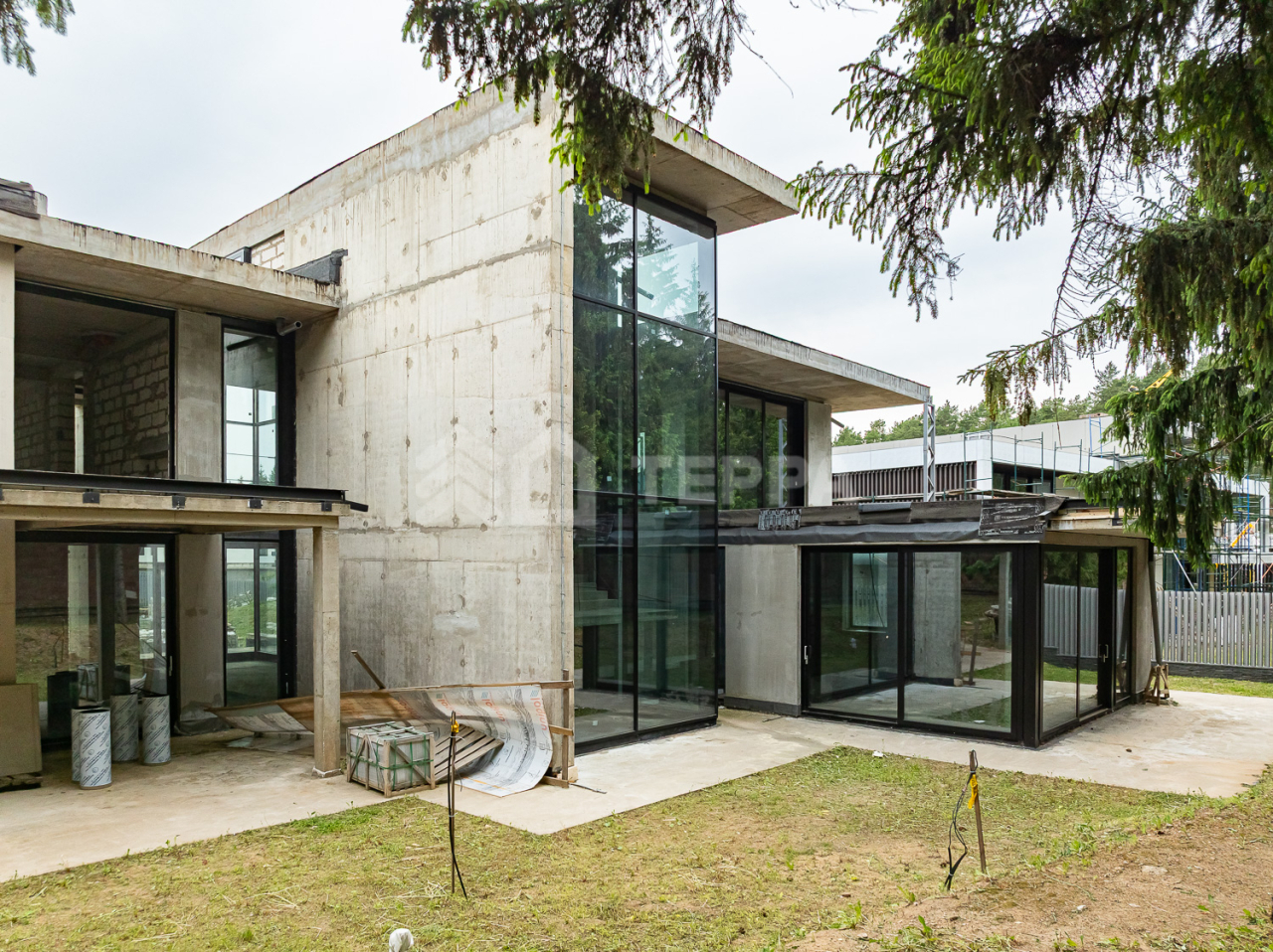 Абсолютно новый современный дом 1037 м2 под отделку расположен на приватном участке 27 соток.