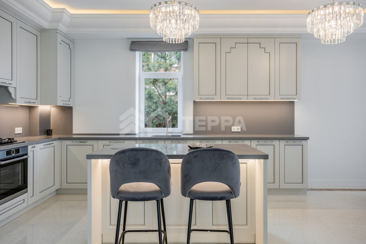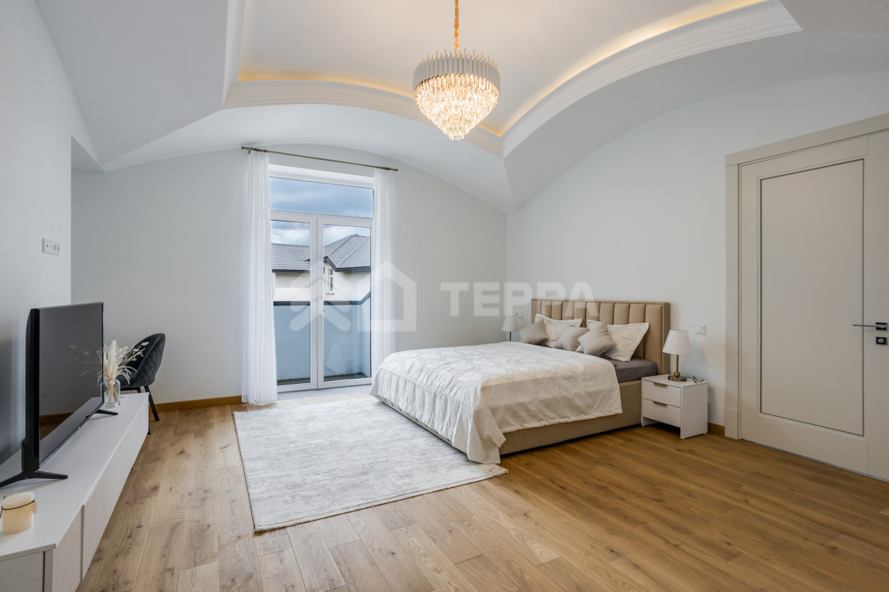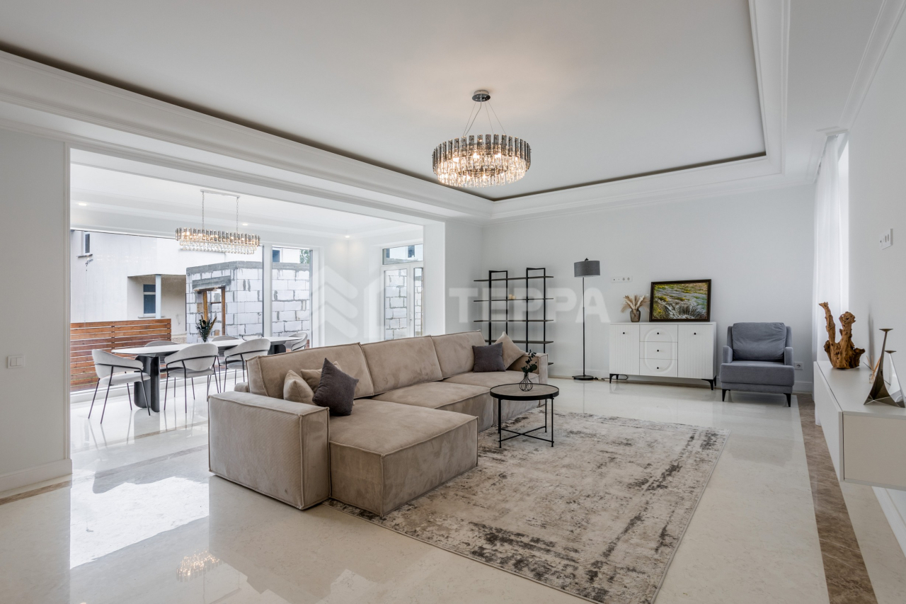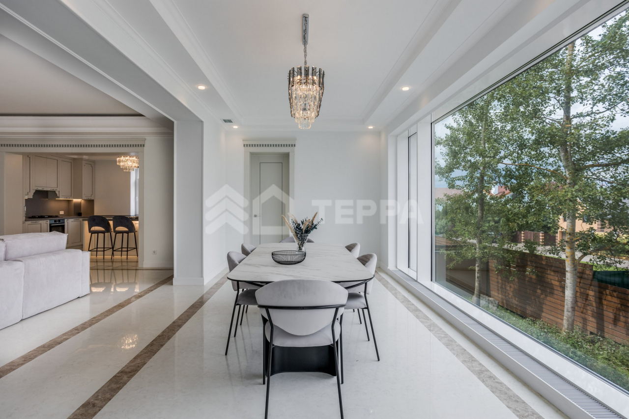 Предлагается к продаже стильный дом с 5 спальнями, общей площадью 400 м. в престижном коттеджном посёлке «Усово-8». Дом готов к проживанию и предлагается под ключ, с отделкой премиум-класса.